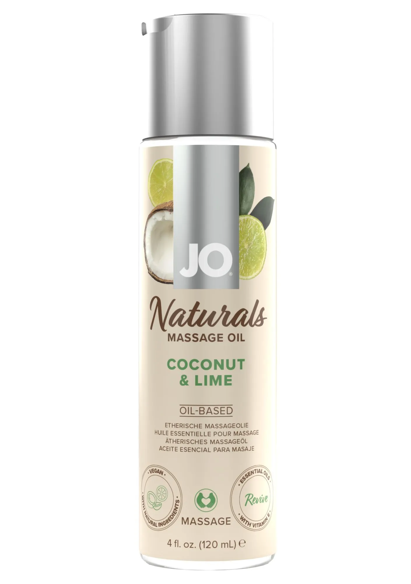 JO NATURALS Massage Oil Coconut & Lime – эфирное масло для массажа на натуральной растительной основе с ярко выраженным ароматом кокоса и лайма.