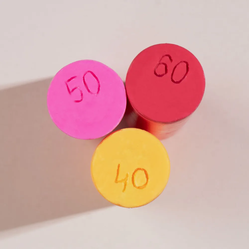 В наборе собраны температуры, как для любителей нежности, так и для острых ощущений. На нижней части свечи можно найти обозначений температур 40°, 50° и даже 60° С. Но помните, что температура капель может варьироваться на ±5° С, так что всегда будьте внимательны и предельно чутки к ощущениям партнёра.