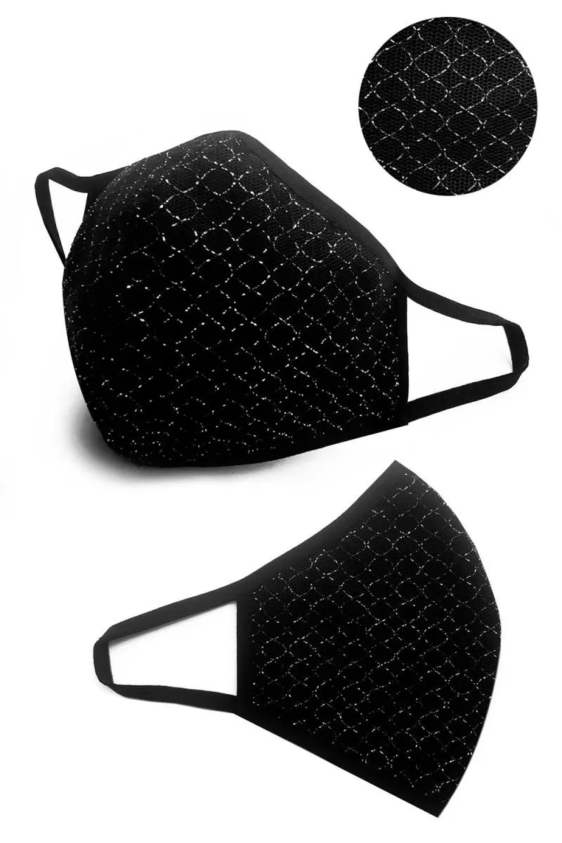 2-слойная многоразовая маска. Внешний слой представляет собой декоративную сетку с черными и серебристыми нитями. Внутренний слой изготовлен из черного хлопка с сертификатом Oeko-Tex. Маска очень удобная, элегантная и прочная. Идеально подходит к лицу. Экологично - не нужно выбрасывать, можно стирать. Легкий уход - стирка при 60°С.