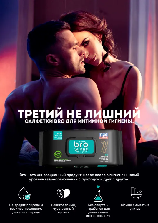 Универсальные салфетки BRO подходят для интимной гигиены, потому что не содержат спирта и парабенов. Не вредят природе. А вам на природе очень пригодятся.