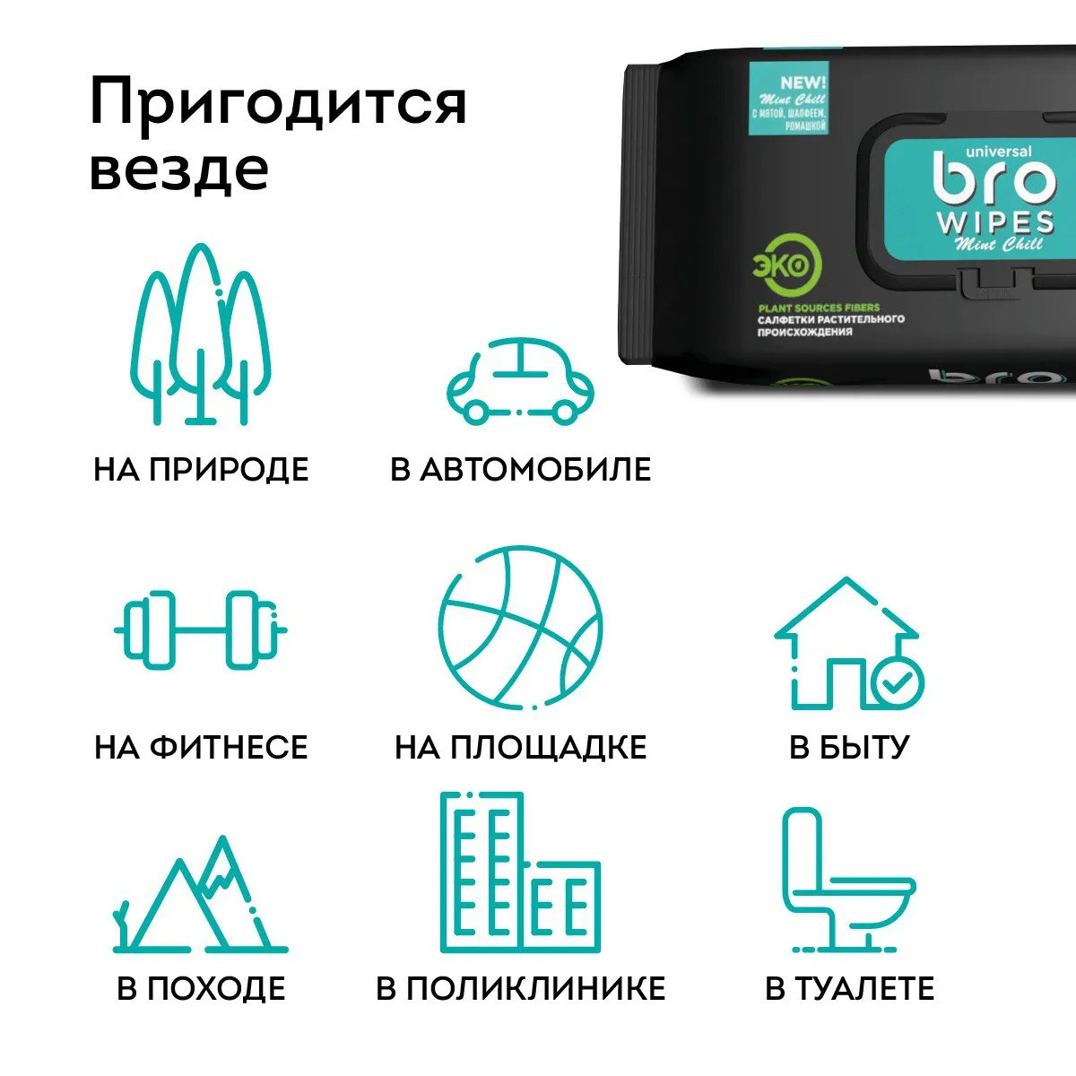 Универсальные влажные салфетки BRO - это эффективный помощник для быстрого очищения рук или тела, а так же незаменимый вариант уборки любых поверхностей и удаления загрязнений.