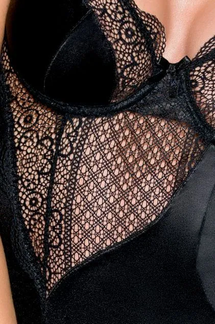 Мини-платье от бренда Lapin Rose сделано из гладкого атласного материала и украшено тонким кружевом и пикантными бантиками. Полупрозрачные ажурные вставки на подоле, на чашках и под грудью добавят всему Вашему образу нежности и элегантности. Чашки с косточками, поэтому форма груди будет подчеркнута.