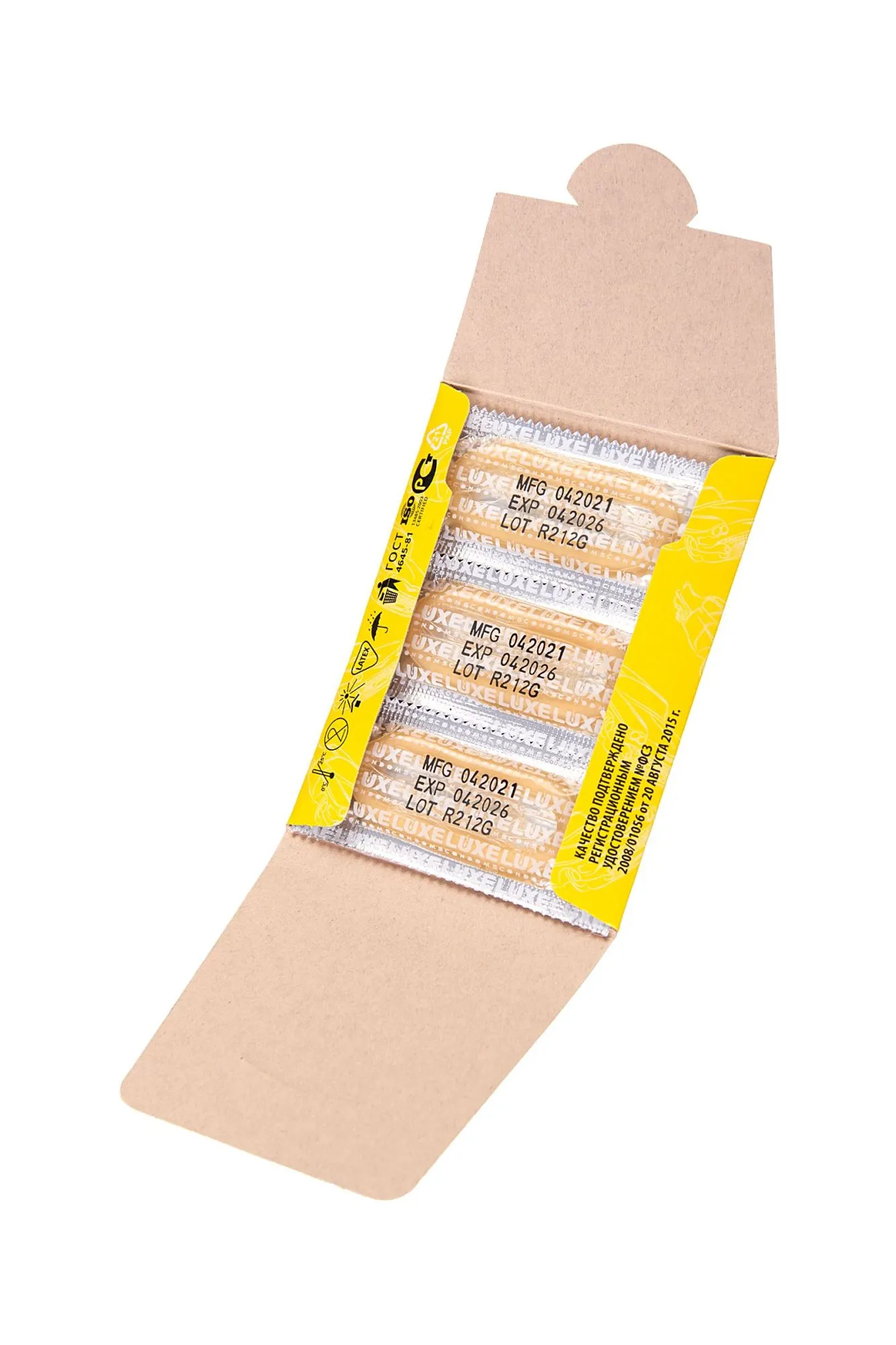 Удивите партнера и порадуйте себя новыми ощущениями! Качественное удовольствие с презервативами LUXE Золотой кадиллак – название говорит само за себя. Три латексных презерватива с накопителем в яркой фирменной упаковке. Гладкая поверхность и силиконовая смазка для качественного и длительного скольжения. Наслаждаться процессом, не беспокоясь о безопасности, легко с презервативами LUXE Золотой кадиллак. Необычная упаковка с креативным дизайном и многообещающим названием также призвана сделать вашу близость незабываемой. Качественный латекс Силиконовая смазка Гладкая текстура Протестировано электроникой Креативная упаковка “конверт” Длина 180 мм Ширина 52 мм Толщина стенок 0,06 мм Количество в упаковке – 3 шт