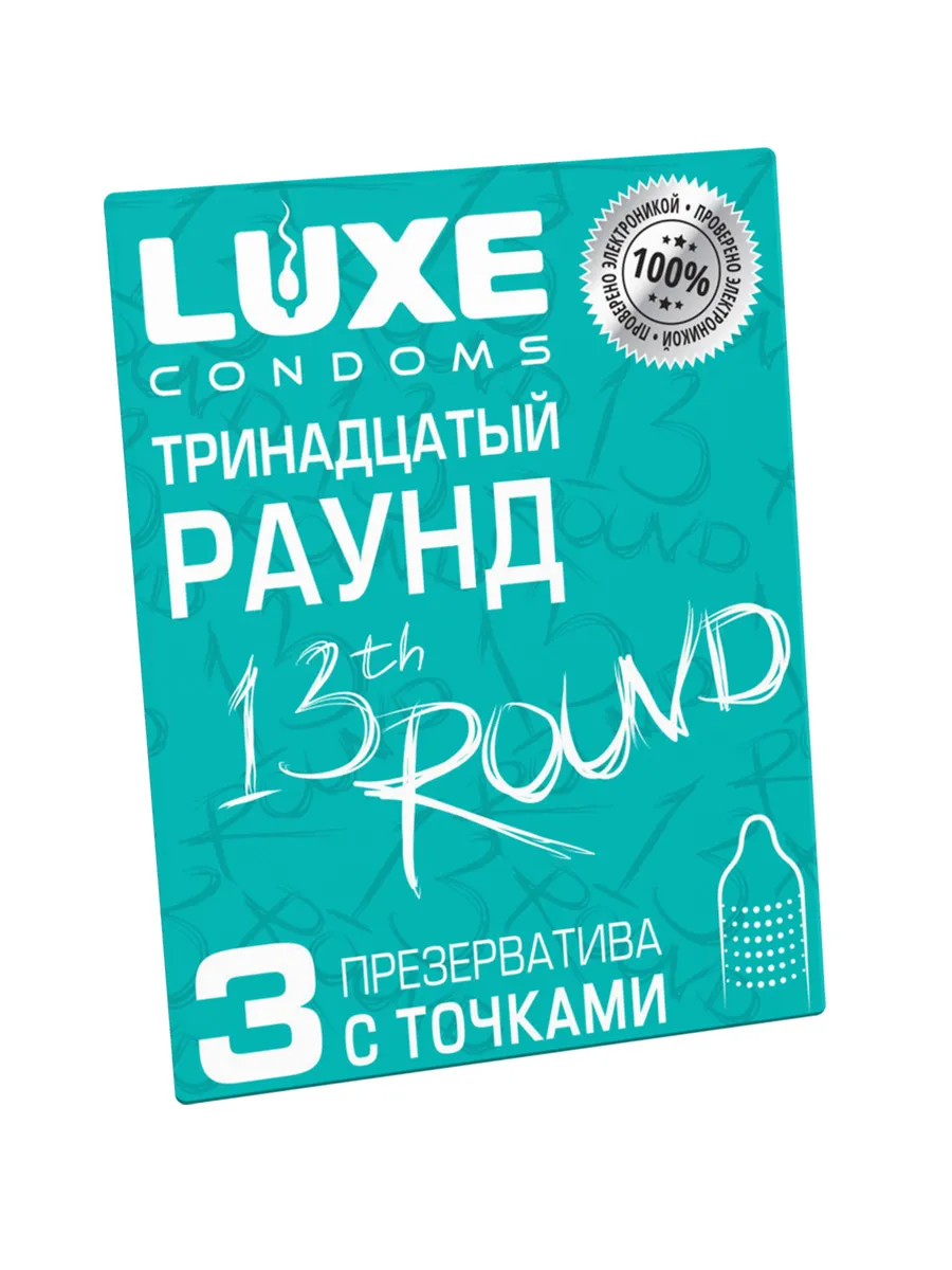 Удивите партнера и порадуйте себя новыми ощущениями! Качественное удовольствие с презервативами LUXE Тринадцатый раунд – название говорит само за себя. Три латексных презерватива с накопителем и смазкой в яркой фирменной упаковке. Рельеф с точками для наивысшего наслаждения и дополнительной стимуляции, чтобы выйти победителем из любого раунда. Наслаждаться процессом, не беспокоясь о безопасности, легко с презервативами LUXE Тринадцатый раунд. Необычная упаковка с креативным дизайном и многообещающим названием также призвана сделать вашу близость незабываемой. Качественный латекс Силиконовая смазка Рельефная текстура – точки Протестировано электроникой Креативная упаковка “конверт” Длина 180 мм Ширина 52 мм Толщина стенок 0,06 мм Количество в упаковке – 3 шт