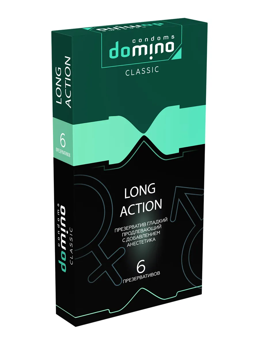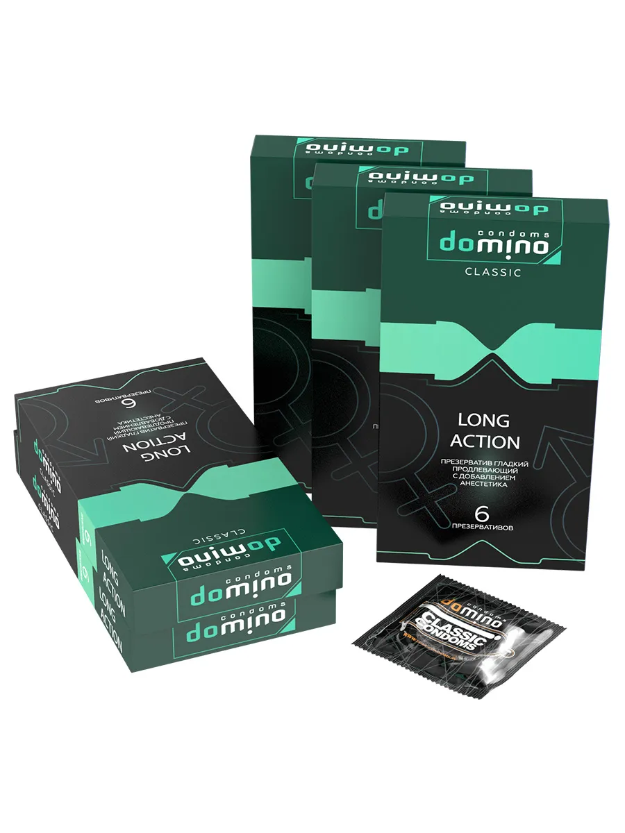 Для тех, кто хочет продлить любовную игру и насладиться ею в полной мере Luxe DOMINO CLASSIC создали презервативы Long action с пролонгирующим эффектом! С ними вы забудете о времени и будете погружены в близость с партнером так долго, как вы этого захотите. Гладкие презервативы с накопителем из высококачественного латекса в смазке с добавлением анестетика. Презервативы Luxe DOMINO изготовлены с тщательным соблюдением европейских технологий качества и прошли электронную проверку на прочность и целостность материалов. Luxe DOMINO CLASSIC Long action позволят продлить наслаждение и не думать о времени, не подведут в самый ответственный момент. Вам не придется думать о том, что он будет скатываться или соскальзывать. Презервативы Luxe DOMINO CLASSIC Long action – открой свои возможности по-новому – продли удовольствие себе и партнеру. Номинальная длина – 18 мм, ширина - 52 мм, толщина стенок - 0,06 мм. В стильной фирменной упаковке 6 штук