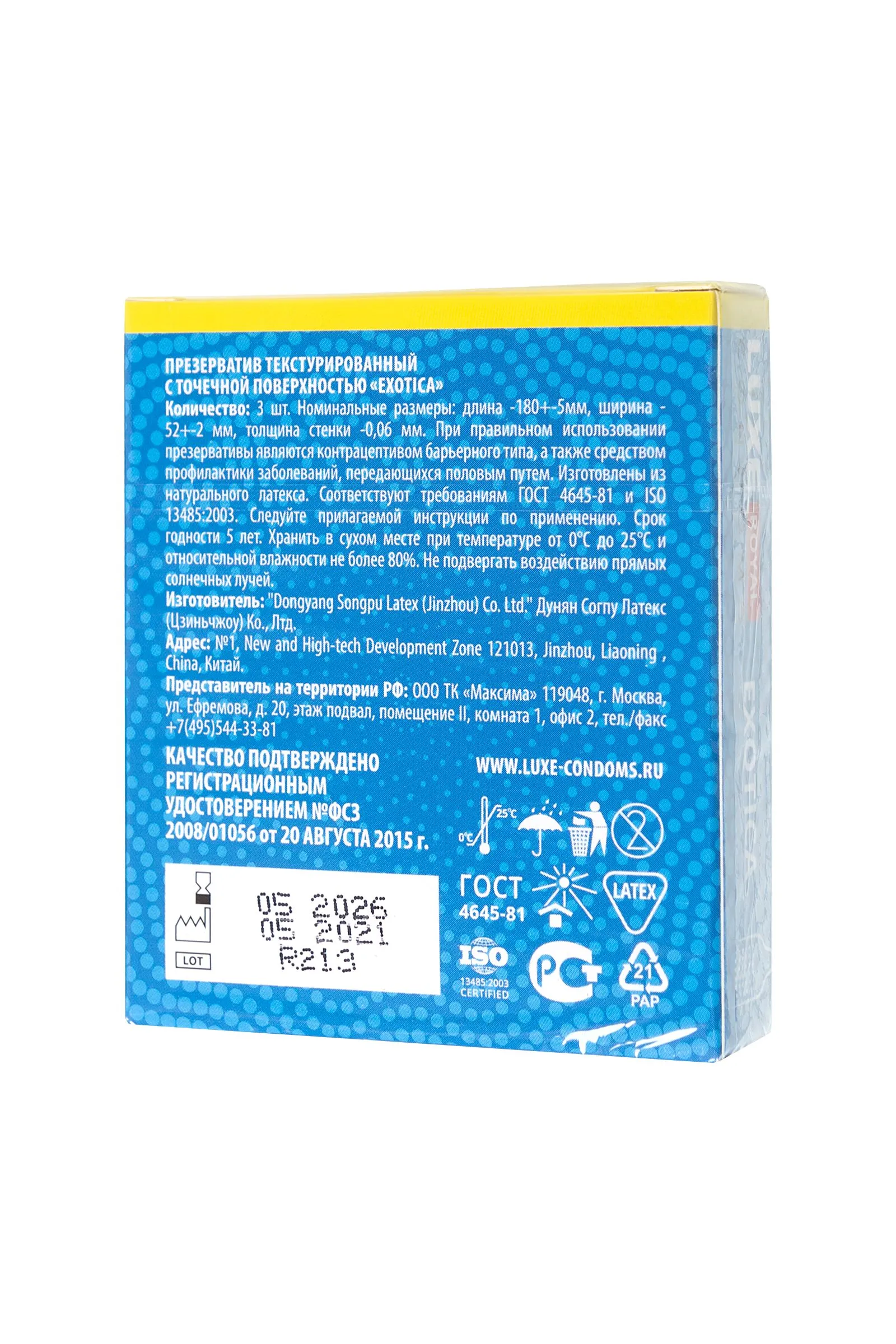 Классические презервативы LUXE Royal Exotica - надежный метод защиты от преждевременной беременности и ЗППП и незаменимый помощник в любовных делах. Три латексных презерватива с накопителем и смазкой в яркой фирменной упаковке. Получить новые ощущения в отношениях и доставить максимальное удовольствие партнерше поможет ребристый рельеф. Наивысшее наслаждение от дополнительной стимуляции чувствительных участков. Силиконовая смазка для качественного и длительного скольжения. Надежность и безопасность использования этих контрацептивов подтверждены тестированием электроникой. Наслаждаться процессом, не беспокоясь о безопасности, легко с презервативами LUXE Royal Exotica Качественный латекс Силиконовая смазка Текстурированный Протестировано электроникой Длина 180 мм Ширина 52 мм Толщина стенок 0,06 мм Количество в упаковке – 3 шт