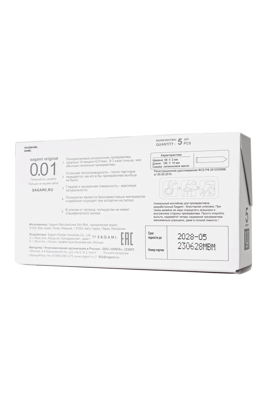 Презервативы Sagami Original 0.02 L-size для мужчин с выдающимся достоинством, которые хотят максимально естественных ощущений, оставаясь при этом под надежной защитой. Знаменитые японские презервативы из полиуретана теперь еще и в увеличенном размере. Безупречная теплопроводность, прозрачная и гладкая поверхность обеспечат полноту визуальных и тактильных ощущений. Реалистичность ощущений. Этот эффект достигается за счет высокой теплопроводности, которая в 7 раз выше, чем у латексных. Надевая презерватив, вы перестаете его ощущать, он буквально сливается с телом. Толщина. Он настолько воздушный и невесомый, что вам будет казаться, что вы и вовсе без него. Толщина стенок полиуретановых презервативов всего 0,02 мм в отличие от латексных, большинство которых имеет минимальную толщину 0,05 мм. Высокая степень прочности. Все презервативы тестируются, но именно Original 0.02 L-size обеспечат защищенный секс с той самой 99% гарантией. Повышенная молекулярная плотность — обеспечивает 100% безопасность. Увеличенный размер - ширина 58 +/- 2 мм, длина 190 +/- 10 мм. Благодаря увеличенному диаметру и длине ощущение комфорта и надежности будет сопровождать вас на протяжении всей близости. Полиуретан – это вам не латекс. Это тот материал, который на 100% гипоаллергенный и совсем не имеет запаха. Не содержит протеинов и подходят людям с аллергией. Индивидуальная упаковка. Каждый презерватив упакован в индивидуальный контейнер. Это весьма удобно, оригинально и безопасно для хранения. Японское качество. Бренд Sagami производит презервативы аж с 1934 года, и за это время они выработали формулу «тщательность + технологии = качество». В упаковке 10 презервативов. Произведено в Японии. Презервативы Sagami из полиуретана — это по-настоящему уникальный продукт, у которого нет аналогов, большинство производителей только пытаются повторить. Компания Sagami настоящий лидер в этом сегменте презервативов.