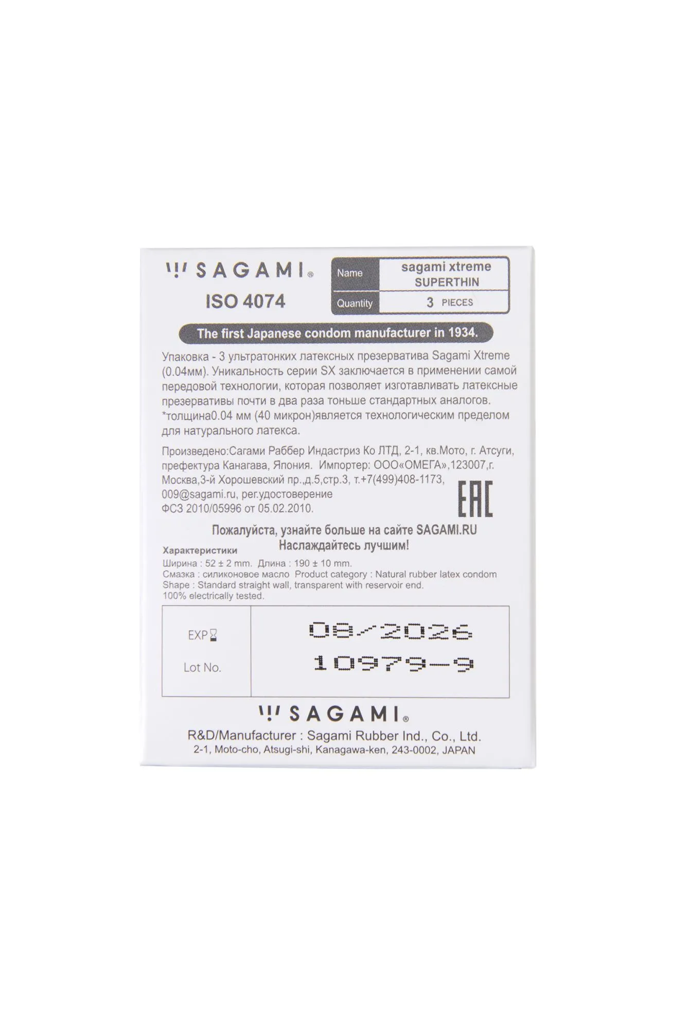 Может ли секс с презервативом быть таким же естественным, как без него? Да, ведь презервативы Sagami Xtreme разработаны с учетом передовых японских технологий для максимально комфортных и естественных ощущений обоих партнеров. Ультратонкие – толщина стенки презерватива всего 0,04 мм, вы только представьте — тоньше человеческого волоса почти в 2 раза, при сохранении самой высокой эластичности и надежности. Их стенки настолько тонкие, что вы сможете забыть о присутствии презерватива и легко насладиться всей гаммой ощущений от близости. Гладкие прозрачные Sagami Xtreme с накопителем плотно прилегают к члену, предотвращая сползание. Безопасные Sagami Xtreme производятся из 100% натурального латекса, не имеют запаха и надежно защищают от нежелательной беременности и ЗППП. Силиконовый лубрикант обеспечивает максимально комфортное проникновение и длительное шелковистое скольжение. Презервативы Sagami Xtreme – наслаждайтесь настоящими чувствами! Длина 195 мм, ширина 54 мм Количество в упаковке - 3 шт Производитель - Япония