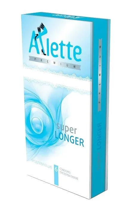 Продлевающие презервативы Arlette Premium №6 Super Longer содержат в два раза больше анестетика и порадуют любителей долгого удовольствия. Презервативы Arlette премиум класса понравятся истинным ценителям, которые жаждут получить максимум ощущений от интимной близости. Их стильная и изысканная упаковка с шестью презервативами внутри очень компактна, поэтому ее будет удобно носить с собой в сумочке или в кармане.