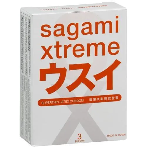 Супертонкие презервативы Sagami Xtreme изготовлены из латекса толщиной всего 40 микрон, что почти в два раза тоньше, чем презервативы других брендов. Благодаря особой формуле они сохранили прежнюю прочность, но стали еще более комфортными и незаметным, делая защищенный секс еще более естественным. Не лишайте себя ощущений с Sagami Xtreme!