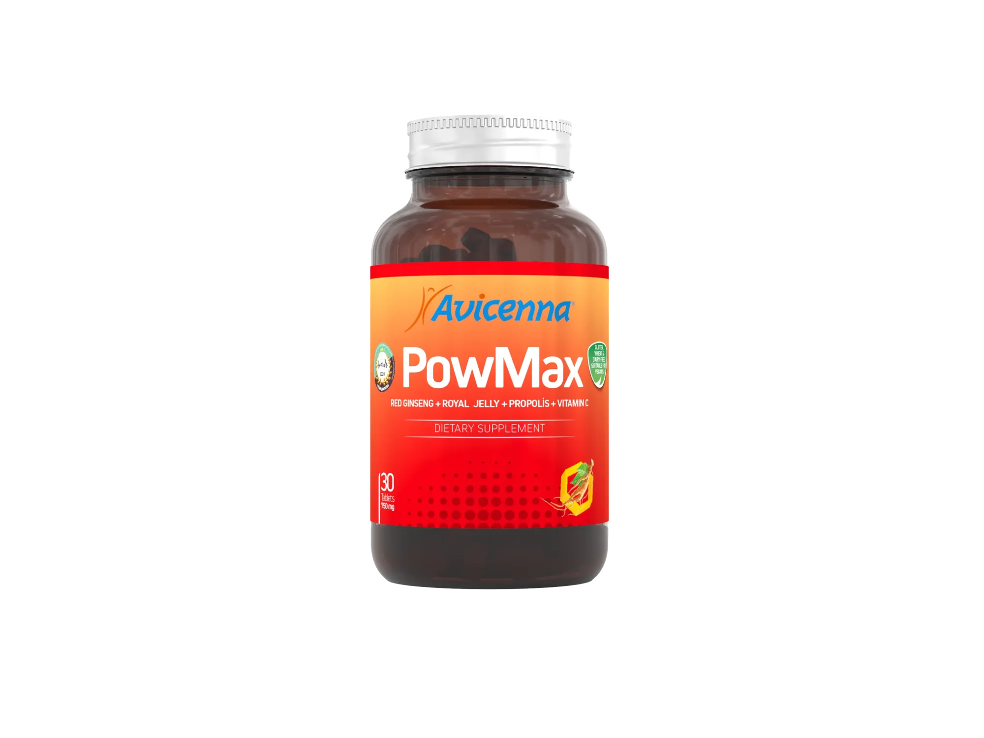 Корень красного женьшеня, маточное молочко, цветочная пыльца, плоды шиповника, прополис, диоксид кремния (носитель), ксантановая камедь (носитель), экстракт корня красного женьшеня, Витамин С (L-аскорбиновая кислота), магниевая соль стеариновой кислоты (носитель)