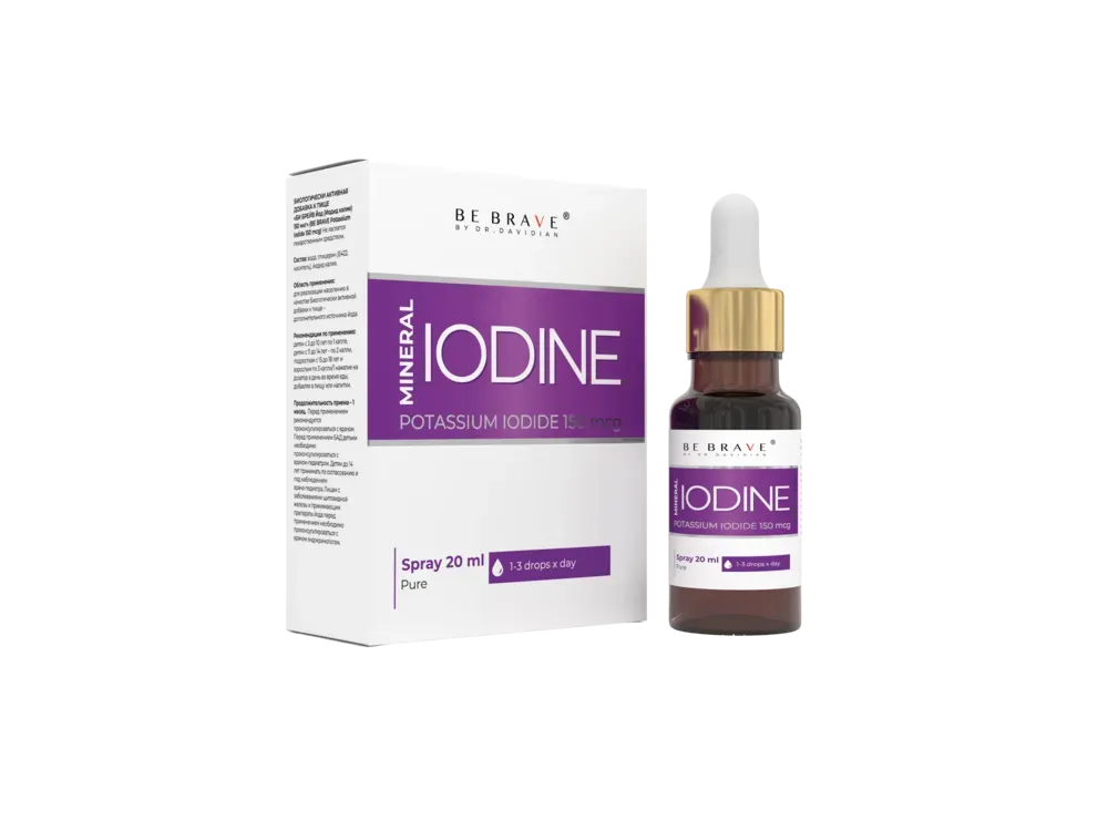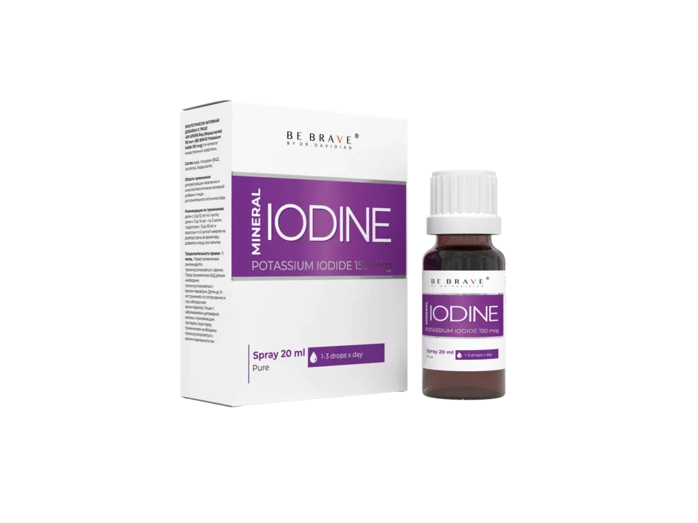 Основа вашей энергии и ясности ума. Йод BE BRAVE® – это современный жидкий микроэлемент на основе хорошо усвояемого йодида калия, созданный для всей семьи. Точный дозатор–пипетка обеспечивает поступление жизненно важного йода, необходимого для здоровья щитовидной железы, регуляции обмена веществ и поддержания умственной активности. Ваш удобный и надёжный способ профилактики дефицита, который испытывает большинство жителей России.