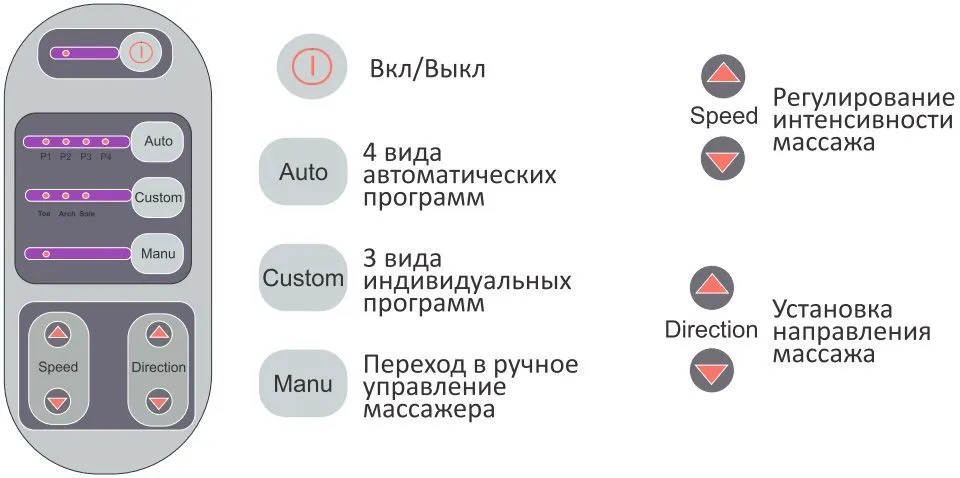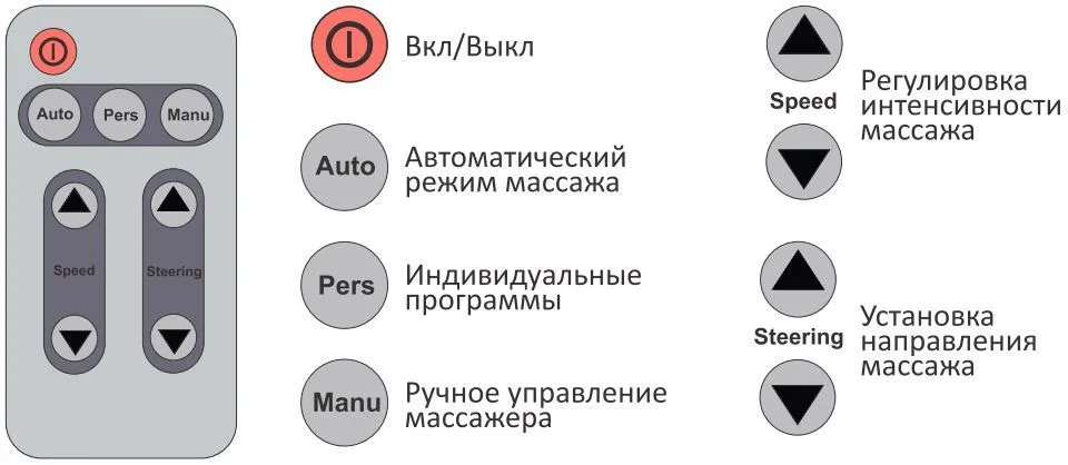 - 4 автоматические программы массажа, а также возможность самостоятельной настройки устройства.