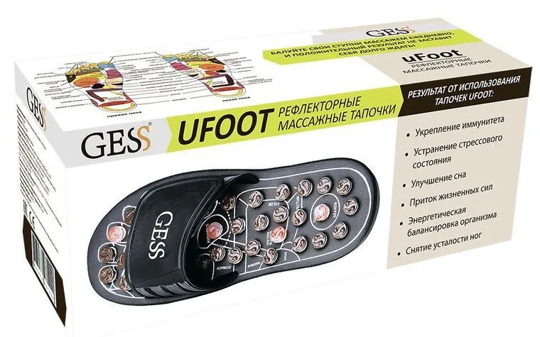 Специальная конструкция тапочек uFoot позволяет осуществлять динамический массаж акупунктурных точек,выработать правильную осанку,поглощать ударные нагрузки на колени. Эффект от использования uFoot будет индивидуальным,подходящим только Вам, так как Ваше тело собственным весом будет оказывать оптимальное давление.