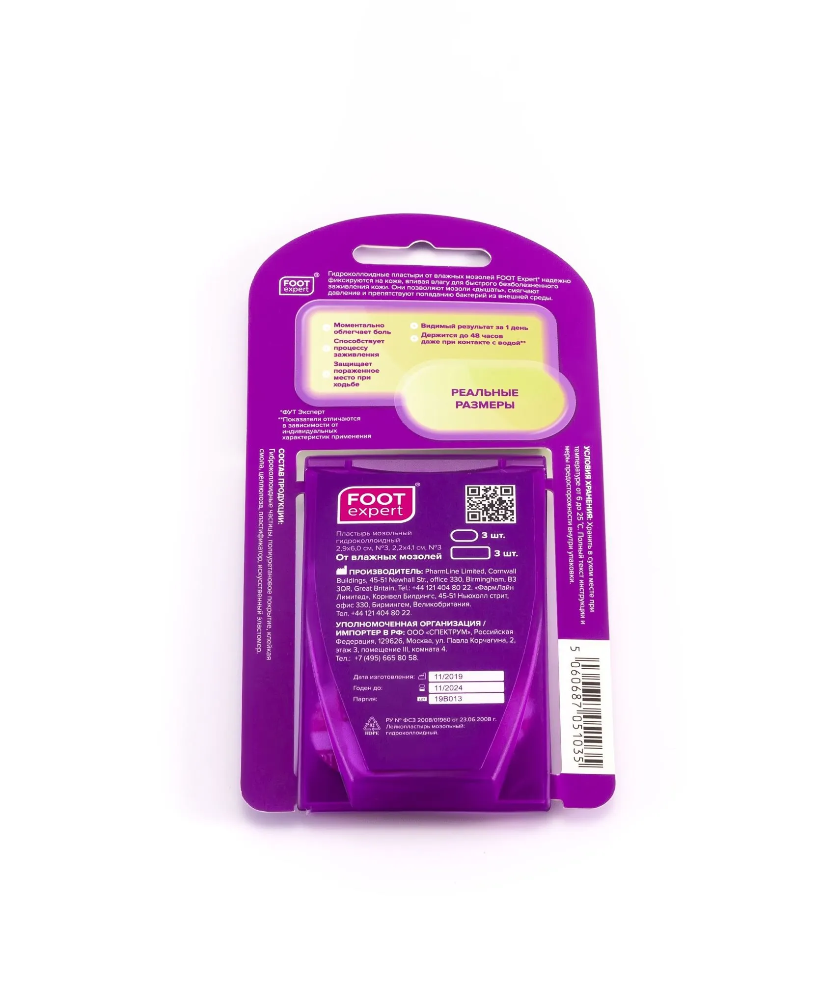 FOOT EXPERT - экспресс-решение при влажных мозолях. FOOOT Expert производится по гидроколлоидной технологии, которая позволяет средству работать по принципу второй кожи. В состав пластыря входит гидроколлоидный полимер, состоящий из мельчайших частиц, которые образуют на поверхности тонкую пленку. При воздействии на пораженную кожу пленочка быстро впитывает отделяемую из раны жидкость, увлажняет поверхность кожи, хорошо пропускает воздух, не позволяет формироваться рубцам и корочкам при заживлении мозоли.