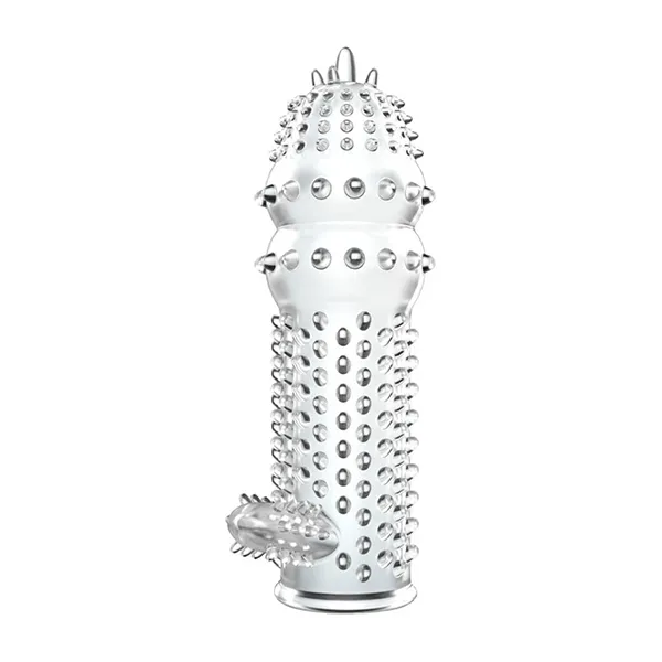 Насадка на фаллос с закрытой головкой, хорошо тянется. Поверхность с пупырышками и мини-усиками для усиления чувствительности эрогенных зон внутри влагалища. Способствует продлению времени сексуального контакта. Изменяющийся рельеф, мягкие шипы различной длины, небольшой отросток для стимуляции клитора.