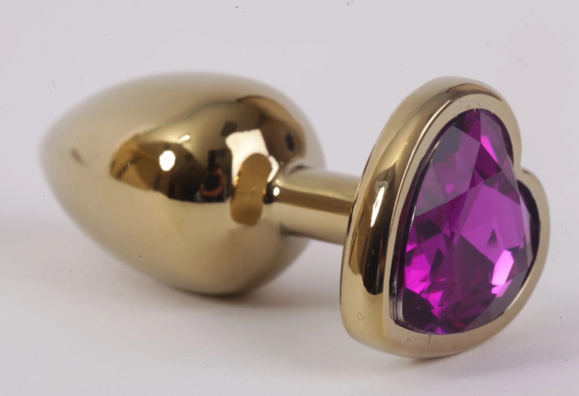 Анальная пробка под золото с ярким кристаллом в форме сердечка внесет разнообразие в вашу интимную жизнь. Обладает сглаженной формой, что позволяет обеспечить легкое введение и комфортное длительное ношение. Снабжена ограничительным основанием для безопасного использования. Характеристики: Общая длина 7,5 см, высота основания 1 см, рабочая длина 6,5 см,наибольший диаметр: 2,8 см., вес 65 гр. Упаковка: индивидуальный тканевый мешочек и коробка.