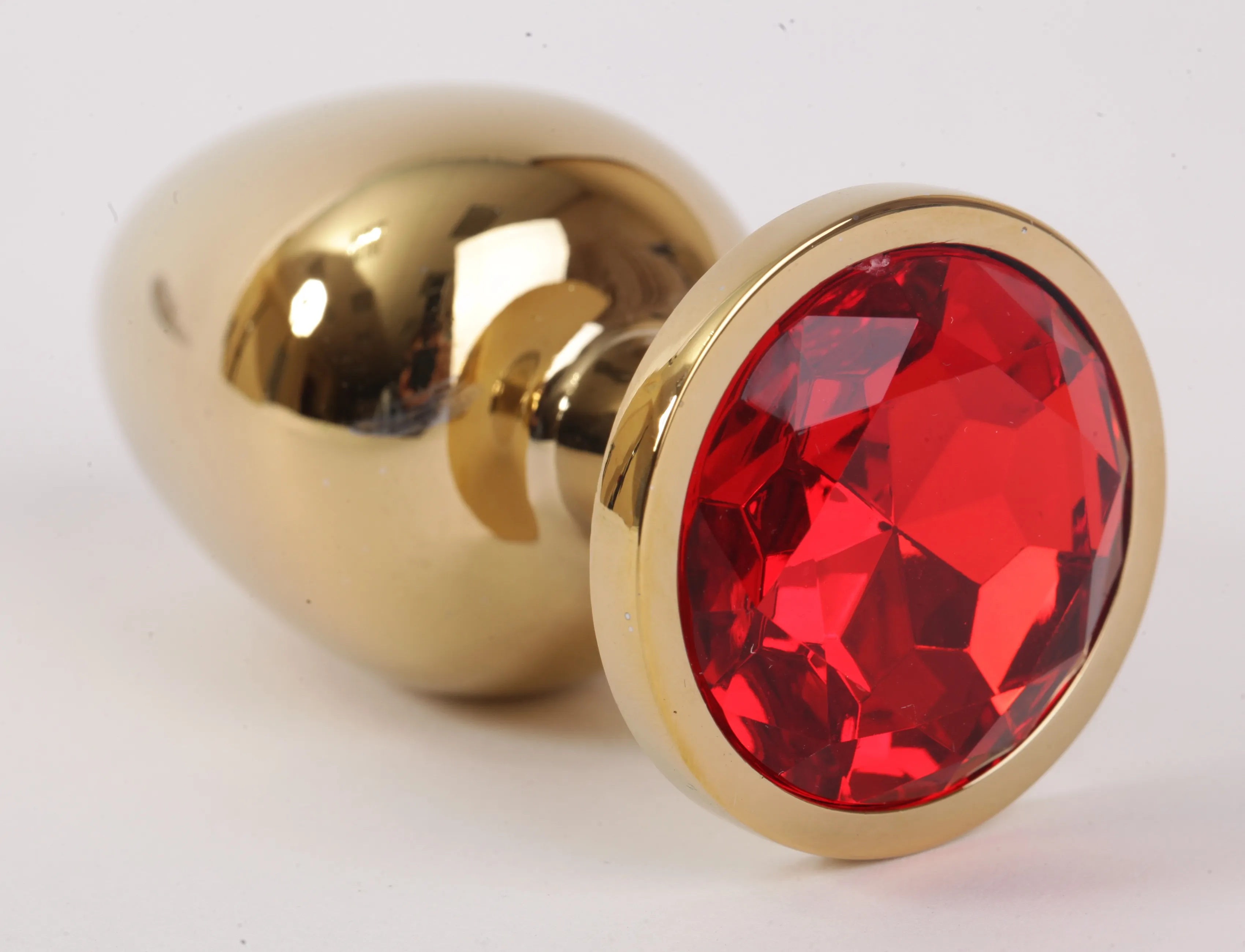 Анальная пробка из металла под золото с ярким кристаллом внесет разнообразие в вашу интимную жизнь. Обладает сглаженной формой, что позволяет обеспечить легкое введение и комфортное длительное ношение. Снабжена ограничительным основанием для безопасного использования. Характеристики: общая длина 10 см, рабочая длина 9,5 см, наибольший диаметр 4 см. Упаковка: индивидуальный тканевый мешочек и коробка.