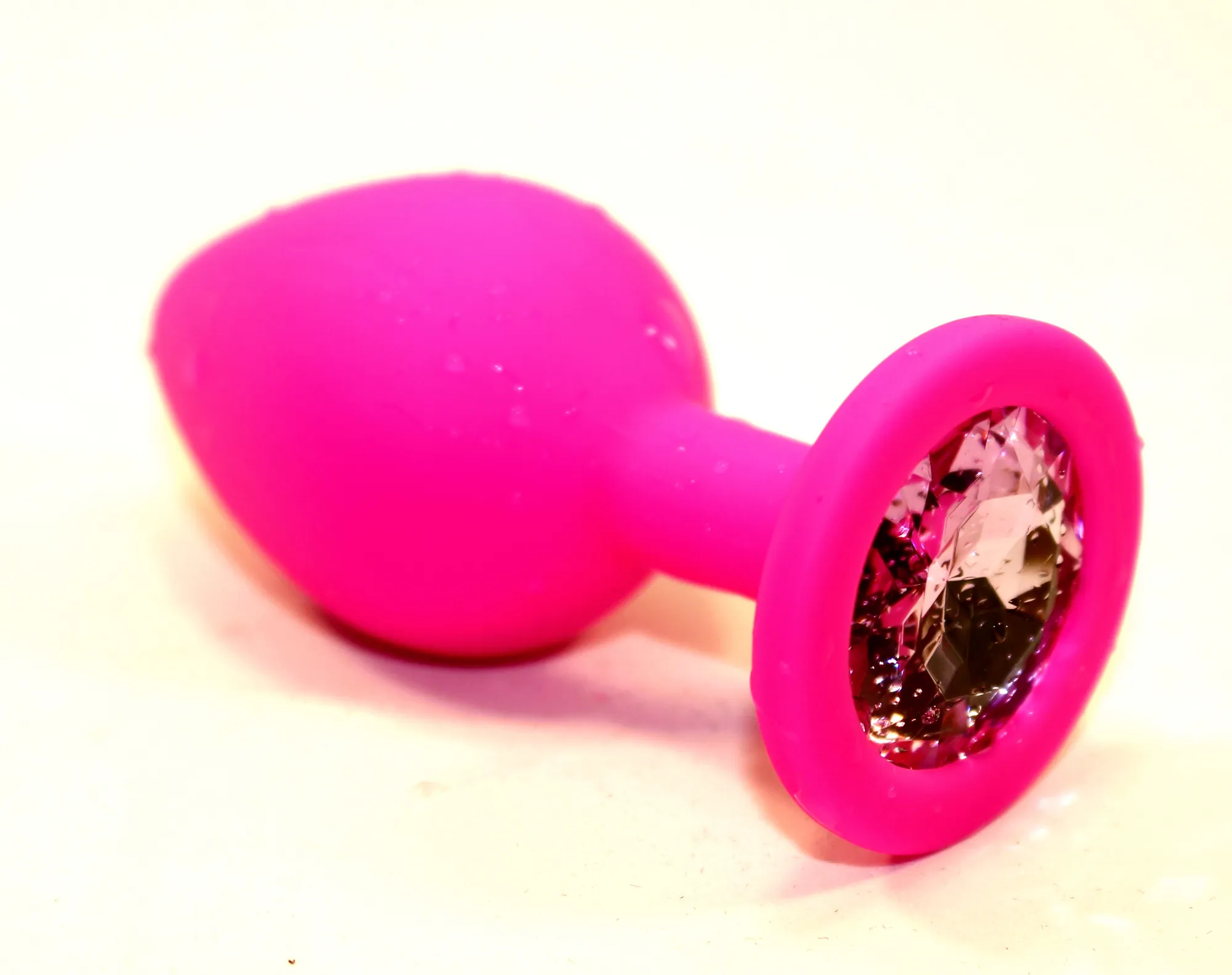 Розовая анальная пробка с розовым стразом, вносит разнообразие в вашу интимную жизнь. Обладает конусной формой, что позволяет обеспечить легкое введение. Снабжена ограничительным основанием для безопасного использования. Характеристики: Общая длина 7 см, наибольший диаметр: 2,8 см. Упаковка: индивидуальный тканевый мешочек.