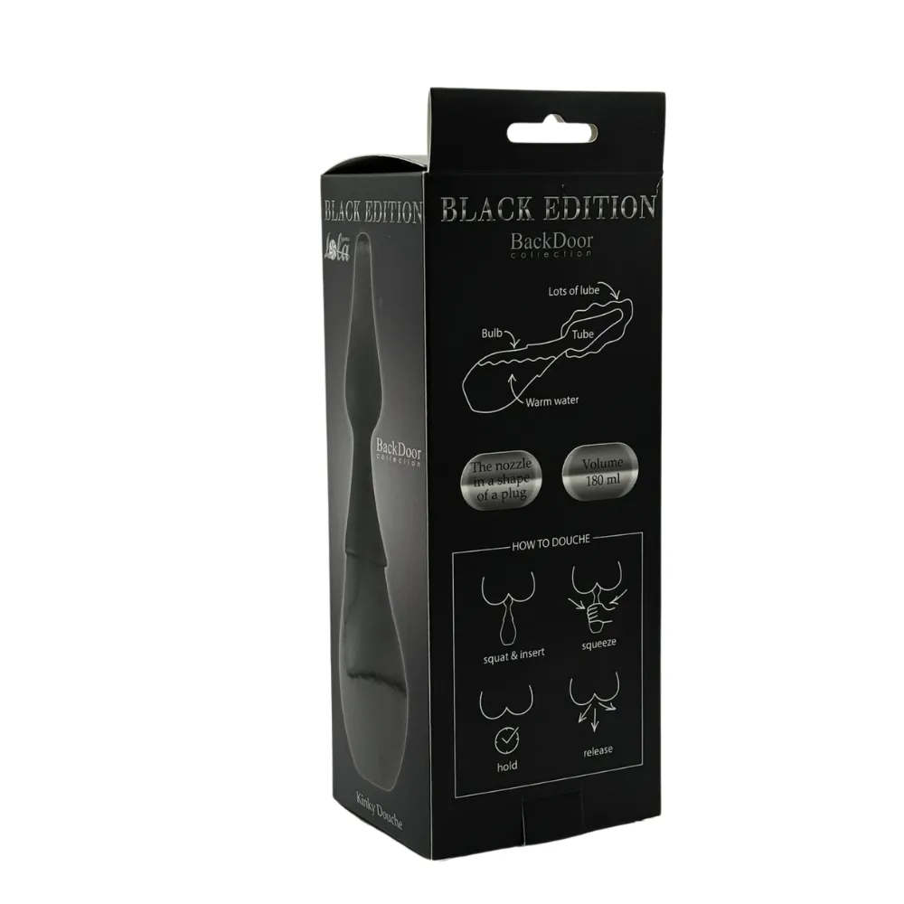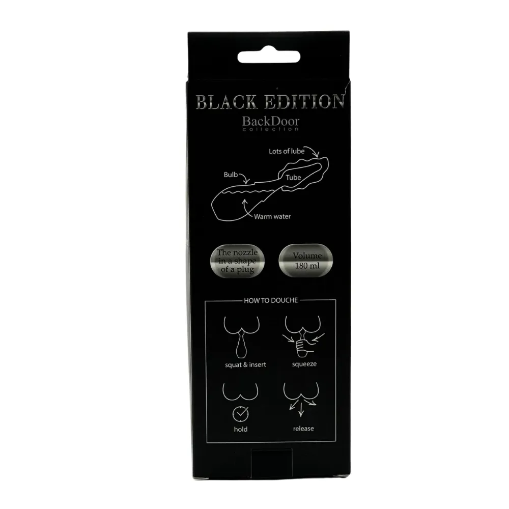 Анальный душ из коллекции Back Door Black Edition позволит максимально хорошо подготовиться к предстоящим ласкам и будет гарантировать чистоту. Наберите теплую воду в грушу, закрутите наконечник и добавьте на него смазку. Плавно введите наконечник в анальное отверстие и нажатием на грушу введите жидкость внутрь. Наконечник выполнен в форме анального плага. Душ изготовлен из медицинского силикона, гипоаллергенен. Длина насадки: 14 см. Минимальный диаметр насадки - 1,6 см, а максимальный - 3,4 см. Диаметр груши — 6,7 см. Длина груши — 9,8 см.