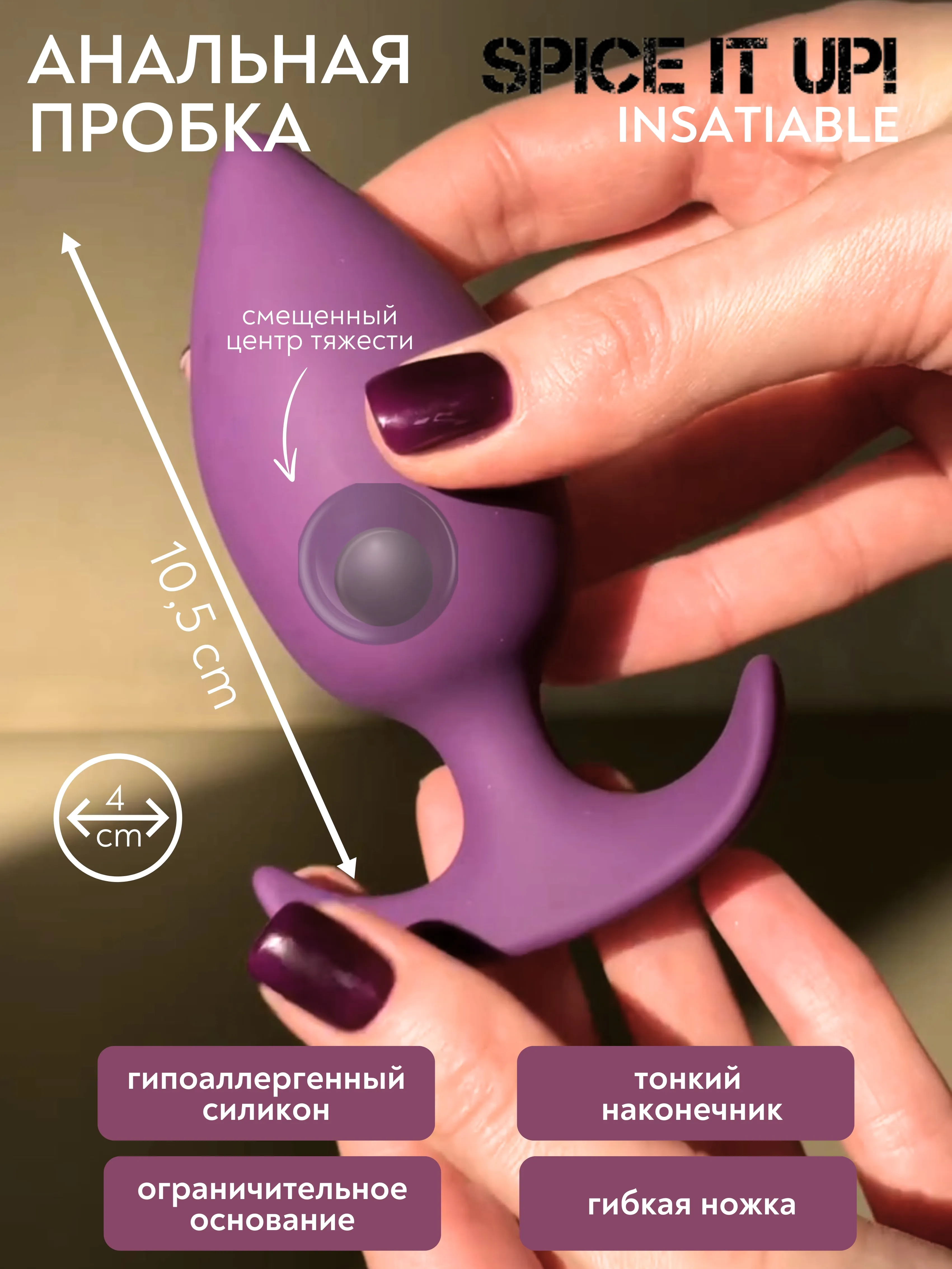 Анальный стимулятор со смещенным центром тяжести имеет внутри шарик в пластиковом футляре, который обеспечивает акустическую вибрацию при ударе шарика о стенку пробки во время использования. Стимулятор изготовлен из гипоаллергенного силикона, он не только прослужит долго, но и обеспечит высокий уровень гигиены. Подходит для длительного ношения благодаря эргономичной форме и надежному ограничительному основанию. Массажер подходит как для мужчин, так и для женщин, его можно кипятить для идеальной стерилизации.
