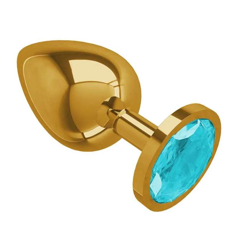 —Анальная втулка золотистая с голубым кристаллом, большая