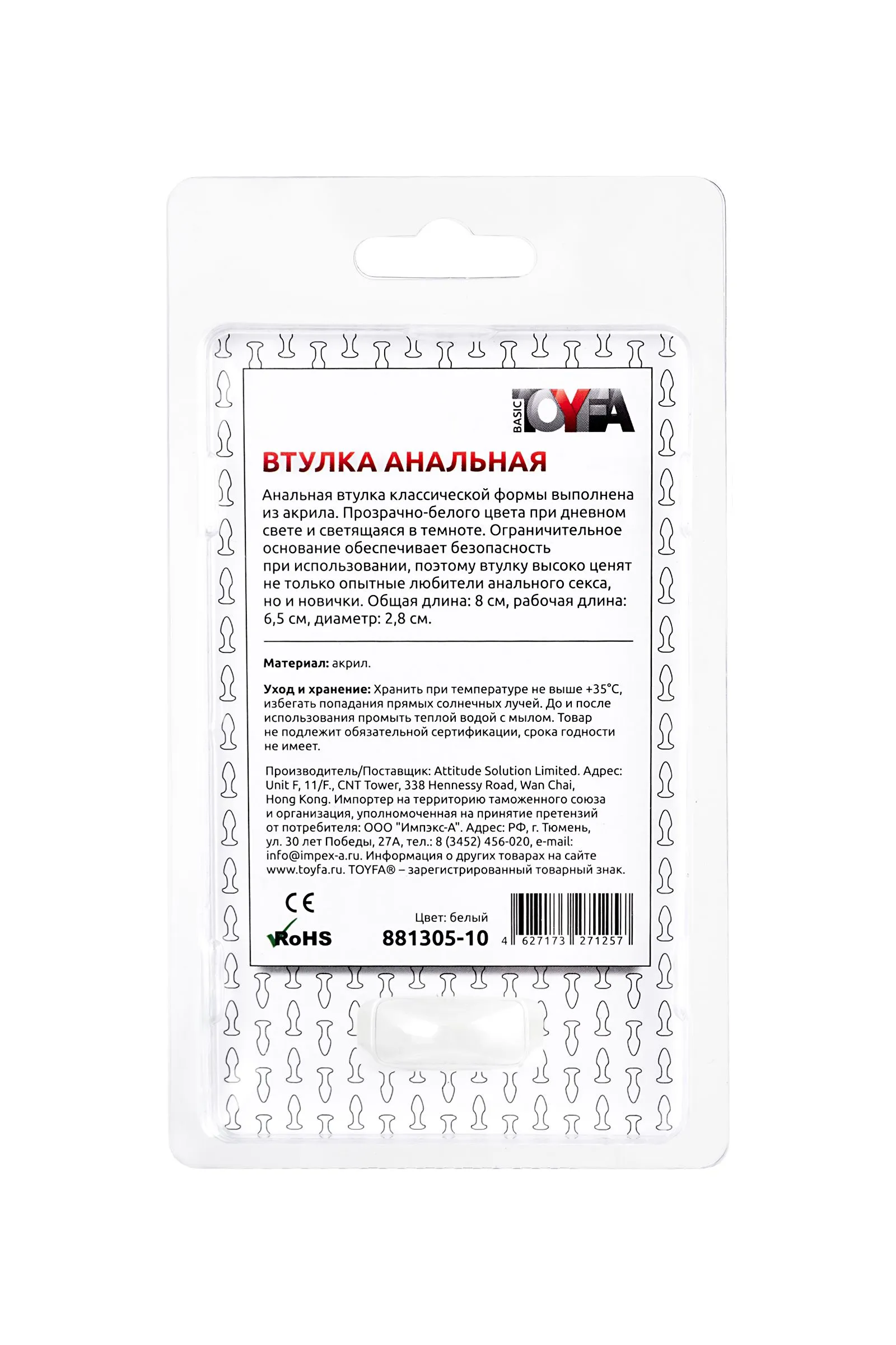 Анальная втулка классической формы выполнена из акрила. Прозрачно-белого цвета при дневном свете и светящаяся в темноте. Ограничительное основание обеспечивает безопасность при использовании, поэтому втулку высоко ценят не только опытные любители анального секса, но и новички.Общая длина: 8 см, рабочая длина: 6,5 см, диаметр: 2,8 см