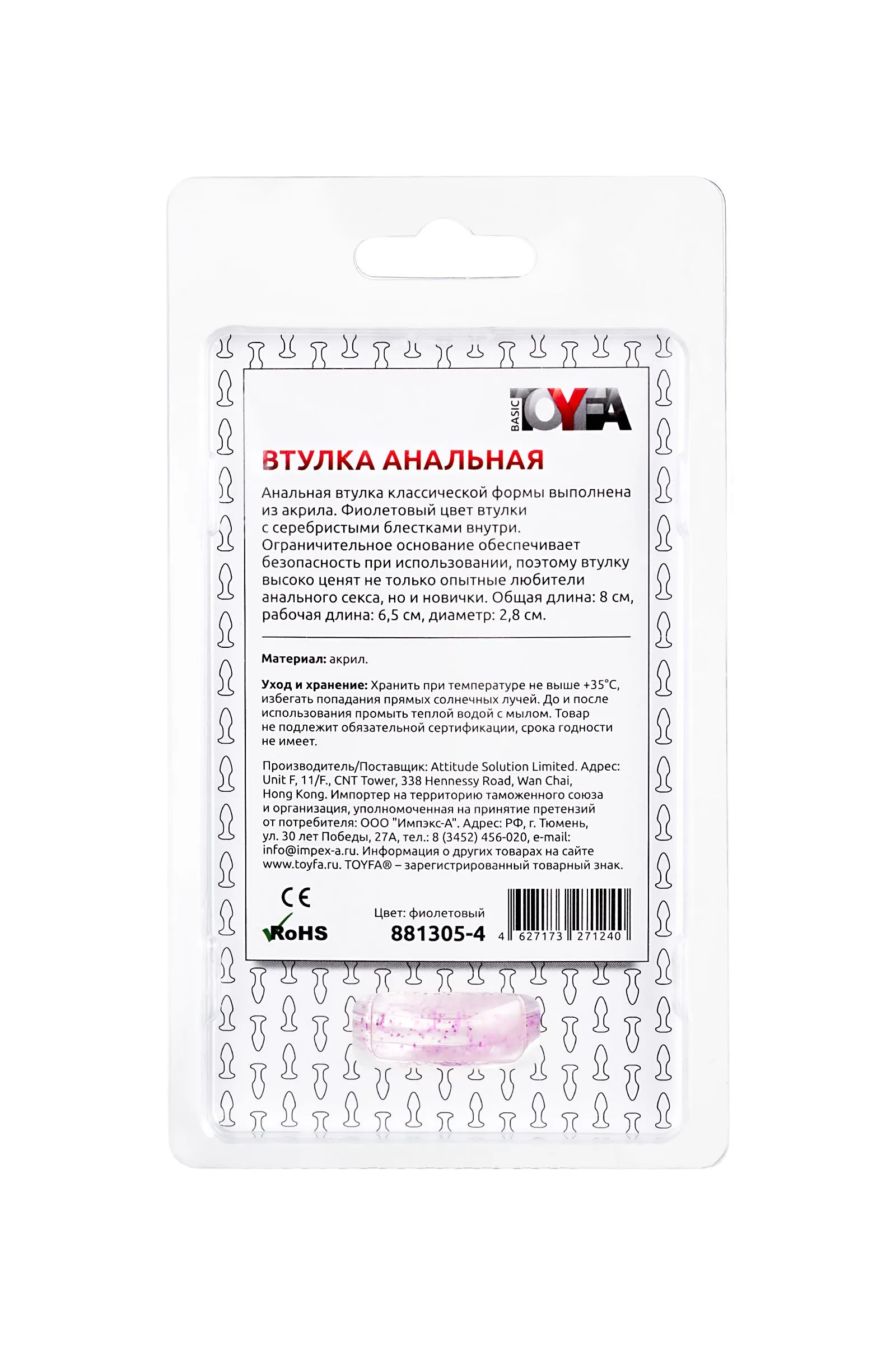 Анальная втулка классической формы выполнена из акрила. Прозрачный материал с золотистыми блестками внутри. Ограничительное основание обеспечивает безопасность при использовании, поэтому втулку высоко ценят не только опытные любители анального секса, но и новички.Общая длина: 8 см, рабочая длина: 6,5 см, диаметр: 2,8 см