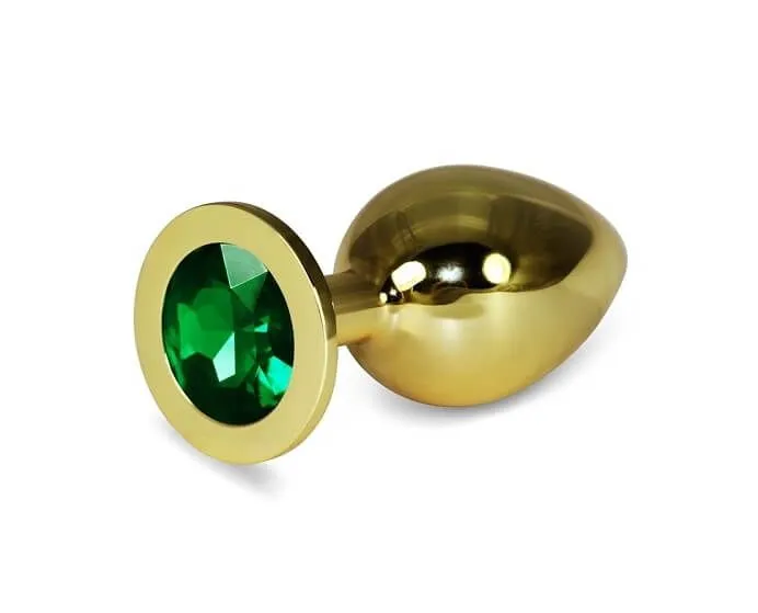 Шикарную анальную пробку большого размера смогут по достоинству оценить любители изысканных удовольствий! Благодаря своей безукоризненно гладкой поверхности и зауженному кончику пробка легко вводится в анус и позволяет деликатно подготовиться к анальному сексу. Основание пробки декорировано крупным сверкающим камнем зеленого цвета, придающим ей пикантности. Анальная пробка выполнена из металла золотистого цвета, полностью гипоаллергенна и не имеет характерного запаха.