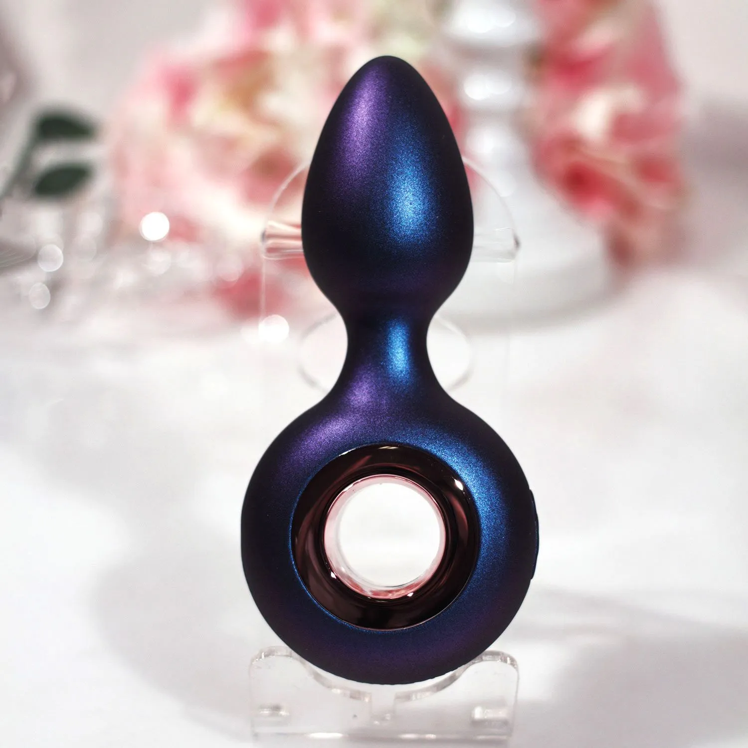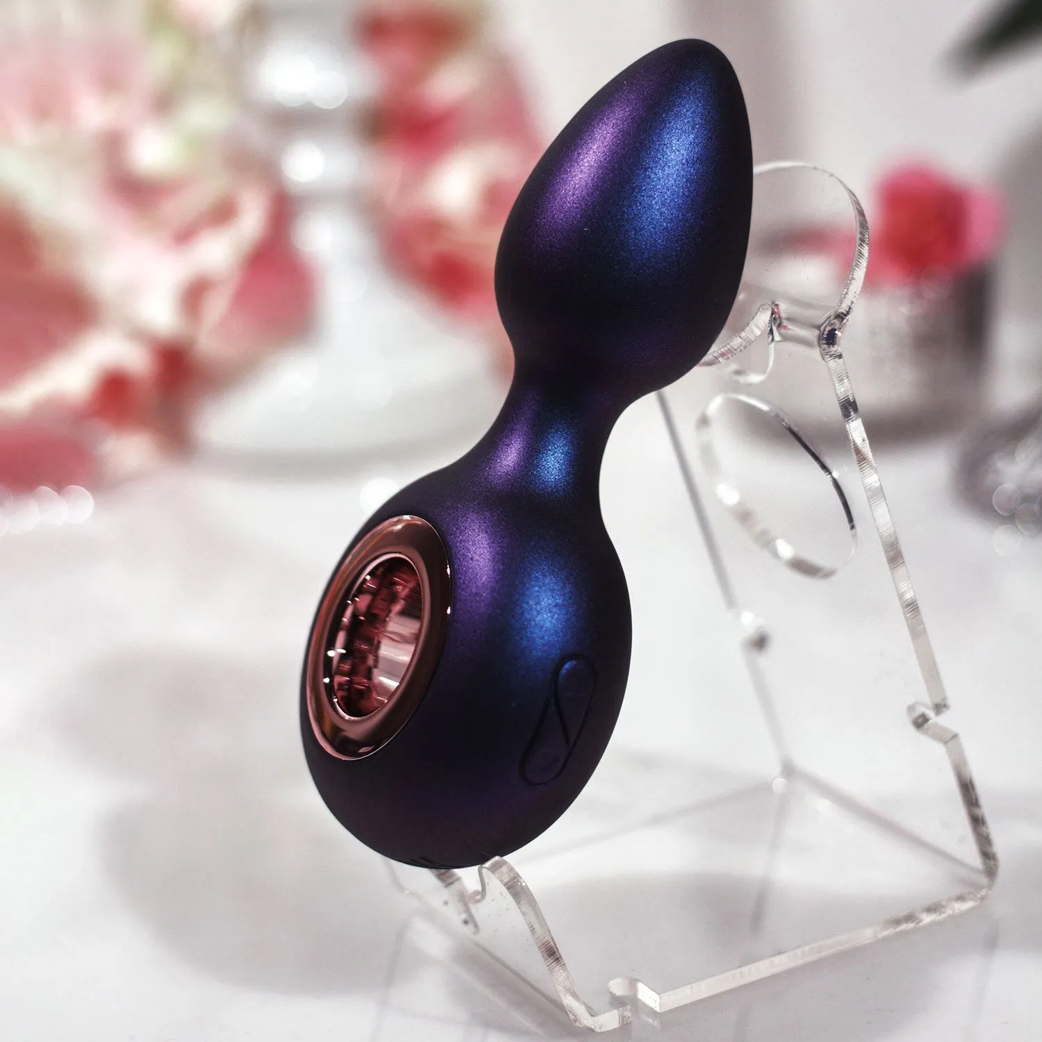 Этот современный секс-девайс сочетает в себе функции анальной пробки и вибростимулятора, чтобы продлить и усилить удовольствие. У него классическая для пробки форма с заострённым кончиком для комфортного введения и встроенный виброэлемент. Блок настройки вибрации скрыт в ограничителе кольцевидной формы и имеет всего две кнопки. Вы сможете установить подходящую для вас интенсивность воздействия, попробовав все 4 скорости и 6 режимов настройки вибрации. Мерцающий сине-фиолетовый оттенок силиконового покрытия делает игрушку стильным аксессуаром для секс-игр. Он доставляет не только физическое, но визуальное наслаждение.