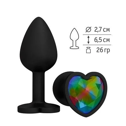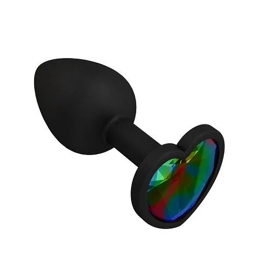 —Пробка силиконовая черная с разноцветным кристаллом сердце