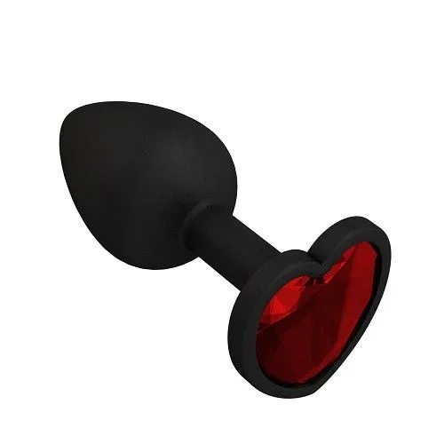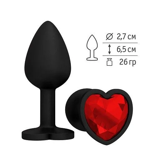 —Пробка силиконовая черная с красным кристаллом сердце