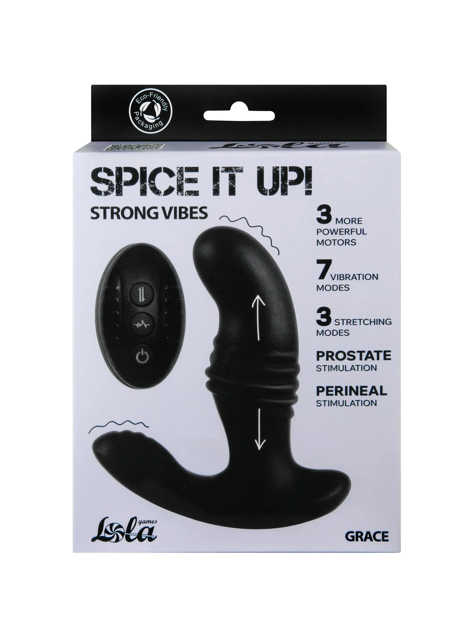Spice it Up Grace - это водонепроницаемый силиконовый массажер простаты с удобным дистанционным пультом управления. Игрушка имеет два вибромотора - в верхней части и в зоне для стимуляции промежности. Каждый мотор оснащен 7 режимами вибрации. Также массажер может пульсировать, растягиваясь и сжимаясь с разной частотой, воплощая 3 различных паттерна. Анатомически выверенная проникающая часть с загнутым кончиком, вкупе с ее размерами, гарантированно достанет до простаты, усиливая потенцию и делая эякуляцию ярче. Массажер заряжается магнитным зарядным устройством, пульт ДУ работает от батарейки CR2032 (входит в комплект). Расстояние работы пульта до 15 метров.