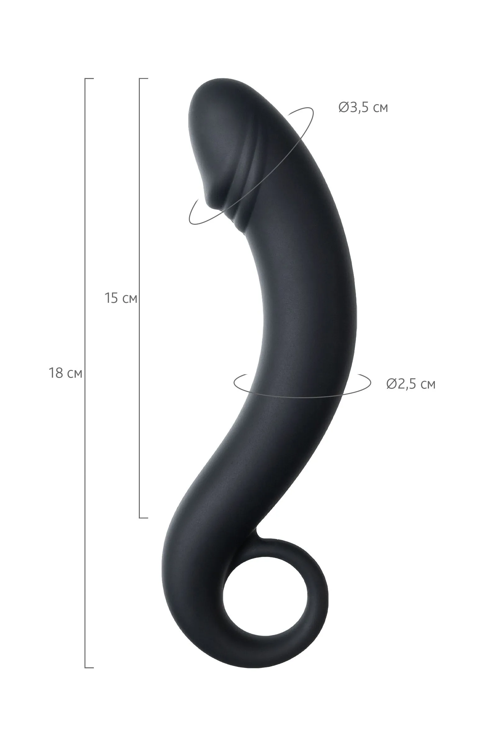 Это секс-игрушка для анальных игр и наслаждений. Изогнутая форма с имитацией головки пениса позволяет во-первых комфортно вводить ее в анус, а во-вторых является отличным способом воздействовать на мужскую точку P, вызывая усиленную волну оргазма. Ручка-кольцо дает возможность легко регулировать степень проникновения и уверенность в том, что игрушка не погрузится полностью внутрь.