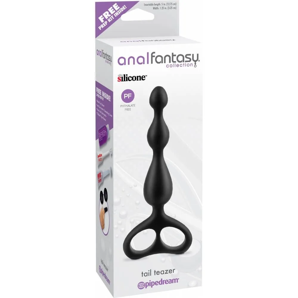 Tail Teazer - это анальный стимулятор черного цвета, выполненный из нежного на ощупь силикона. Рельефный ствол стимулятора состоит из шариков разного размера, первый из которых