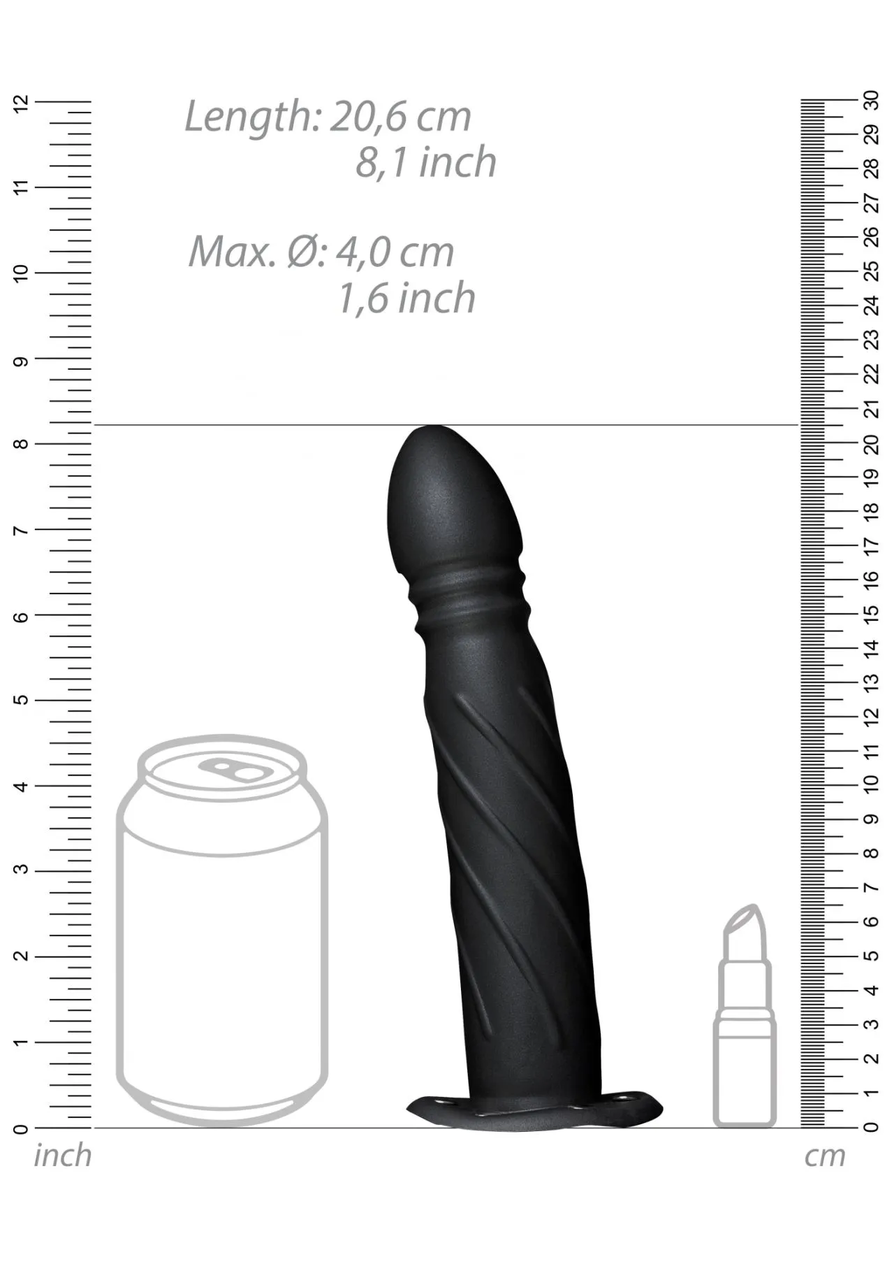 Страпон-фаллопротез со спиралевидной фактурой без мошонки - 8'' / 20 см