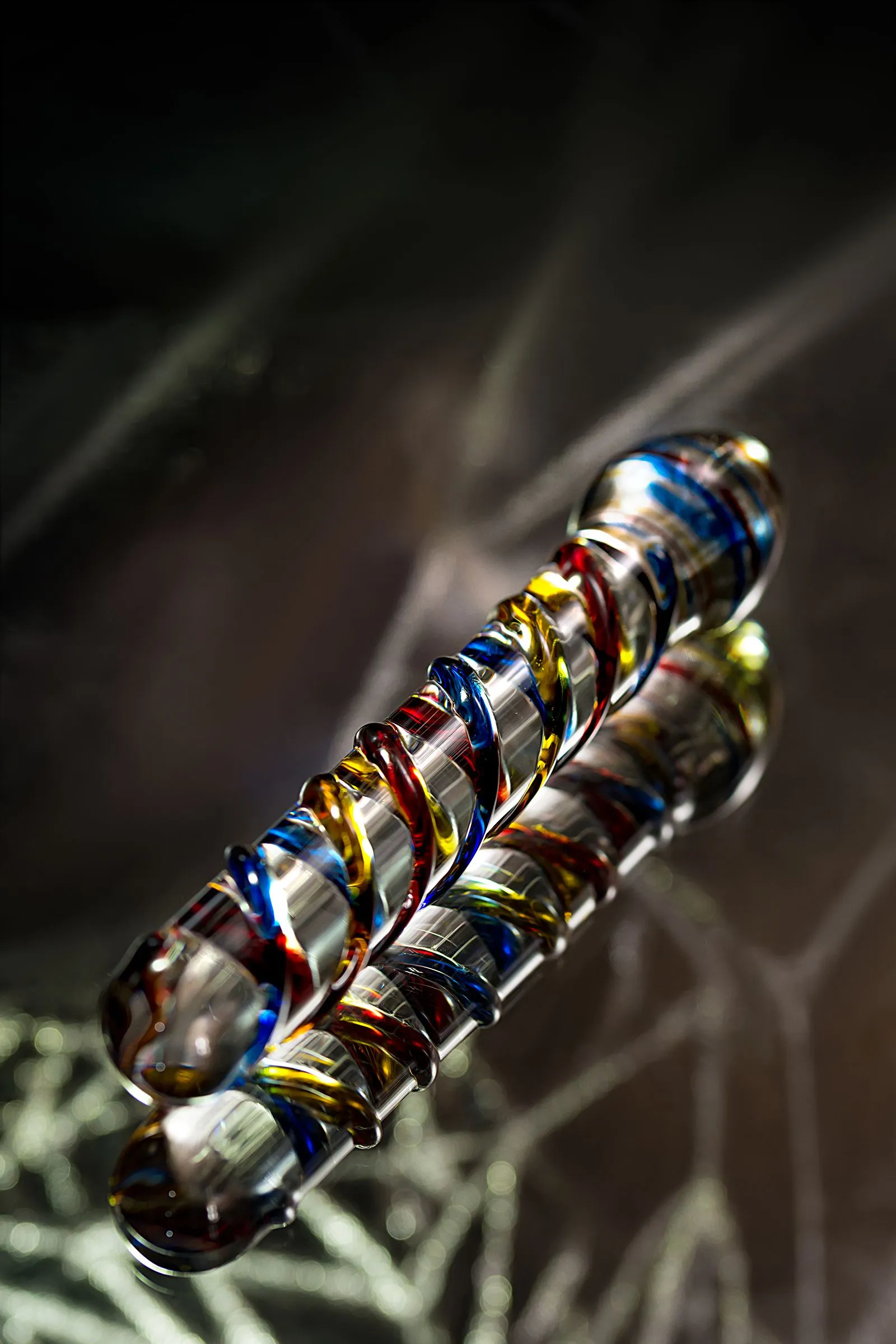 Этот идеально гладкий стеклянный фаллос делает интимные игры такими же яркими, как украшающие его ствол разноцветные полоски. Вагинальная стимуляция, анальная — с этим фаллосом можно ни в чём себе не отказывать! Он даже благосклонно относится к экспериментам с температурой: стоит лишь немного нагреть или охладить игрушку, и она откроется с новой, полной удовольствия стороны.