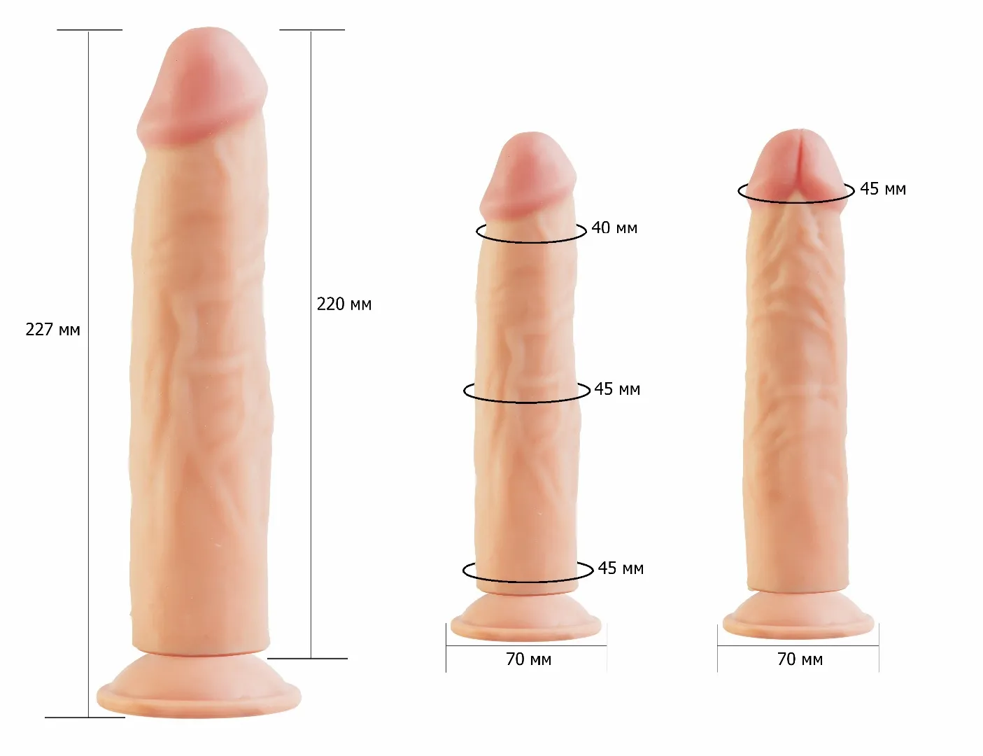 Фаллоимитатор на присоске имеет форму члена с ярко-выраженной головкой, рельефный, выполненный из сверхсовременного материала нового поколения "Неоскин", обладающий уникальными свойствами по пластичности, передающий эффект очень мягкой текстуры кожи. Характеристики: Общая длина- 21 см, рабочая длина- 20 см, максимальный диаметр - 4,7 см. Упаковка: картонная коробка с принтом.