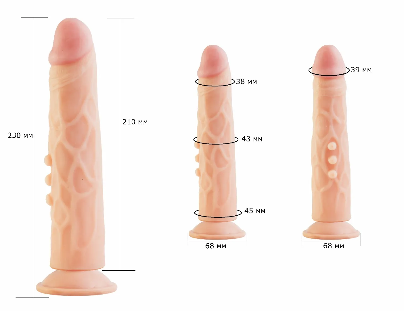 Реалистичный фаллоимитатор телесного на присоске с ярко-выраженной головкой. Необычайно приятный, рельефный, выполненный из «Киберкожи» , передающий эффект мягкой реалистичной текстуры кожи, не имеет швов. Общая длина – 23,5см, рабочая длина-21,5 см, максимальный диаметр -5 см. Упаковка в виде прозрачной пленки.