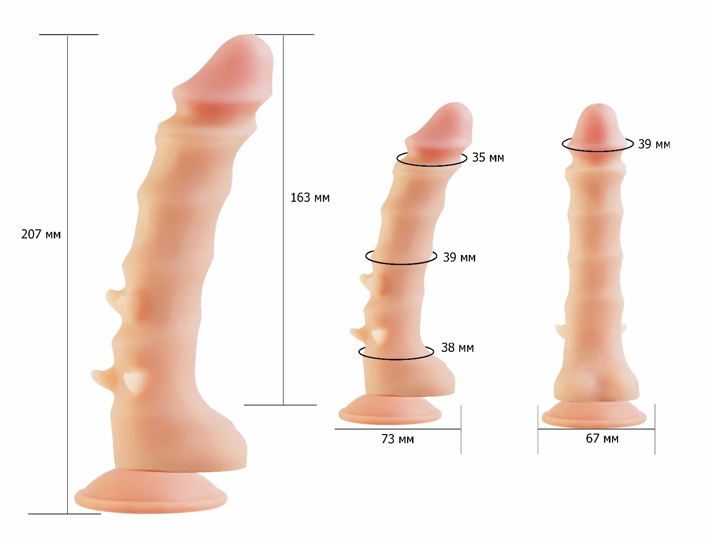 Реалистичный фаллоимитатор телесного цвета на присоске с ярко-выраженной головкой. Необычайно приятный, рельефный, с двуслойной структурой изделия. Материал термоэластопласт (tpr/tpi) передающий эффект мягкой реалистичной текстуры кожи, не имеет швов. Характеристика: без фталатов, общая длина – 21 см, рабочая длина- 16 см, максимальный диаметр- 3,3 см, изделие сертифицировано. Упаковка: картонная коробка с принтом.