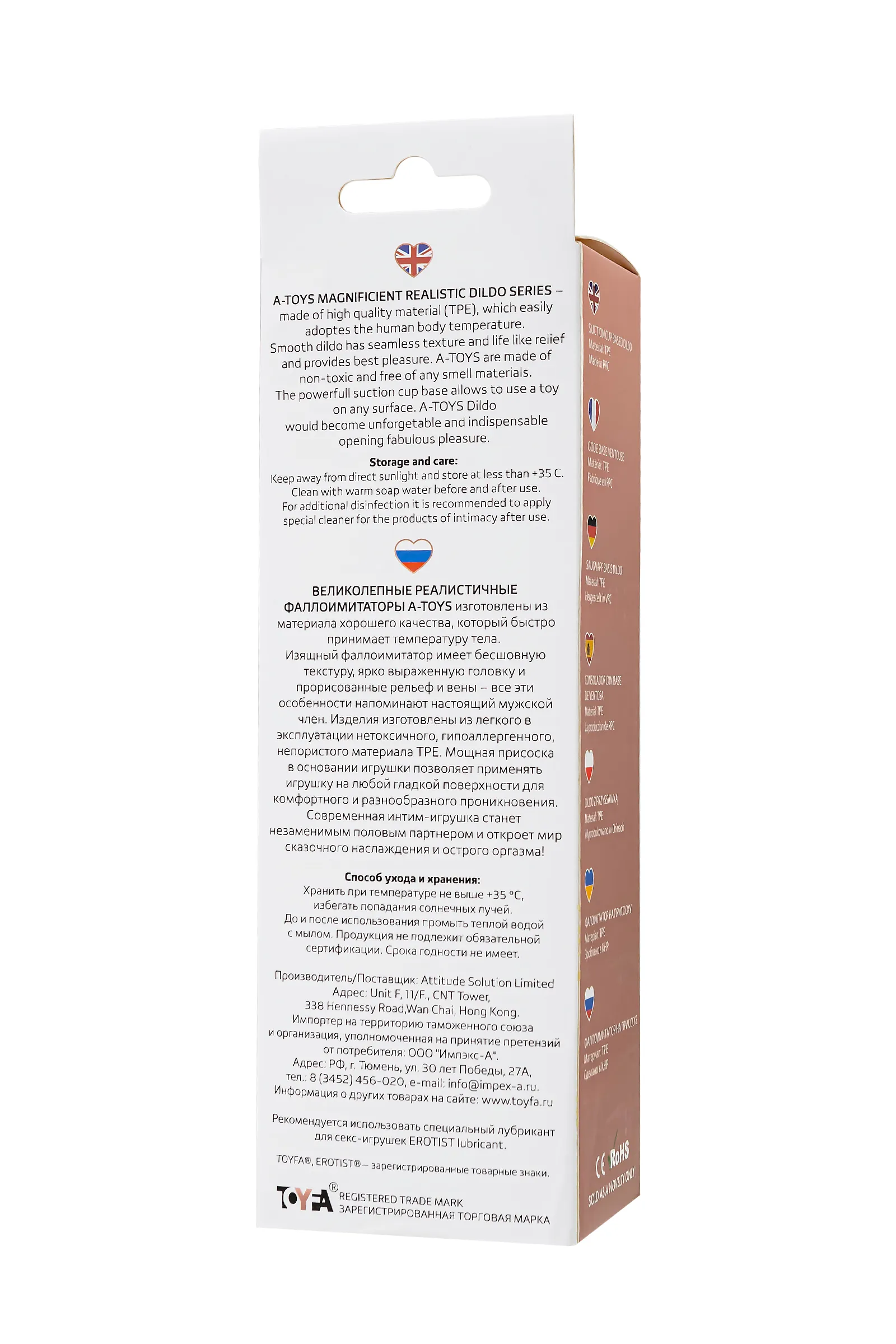 ВЕЛИКОЛЕПНЫЕ РЕАЛИСТИЧНЫЕ ФАЛЛОИМИТАТОРЫ A-TOYS изготовлены из материала хорошего качества, который быстро принимает температуру тела. Изящный фаллоимитатор имеет бесшовную текстуру, ярко выраженную головку и прорисованные рельеф и вены – все эти особенности напоминают настоящий мужской член. А мощная присоска в основании игрушки позволяет применять игрушку на любой гладкой поверхности для комфортного и разнообразного проникновения. Современная интим-игрушка станет незаменимым половым партнером и откроет мир сказочного наслаждения и острого оргазма! ВАЖНАЯ ОСОБЕННОСТЬ: рекомендуется для сохранности изделия не отрывать его с силой от поверхности, а аккуратно снимать изделие с края присоски. Рабочая длина 16,5