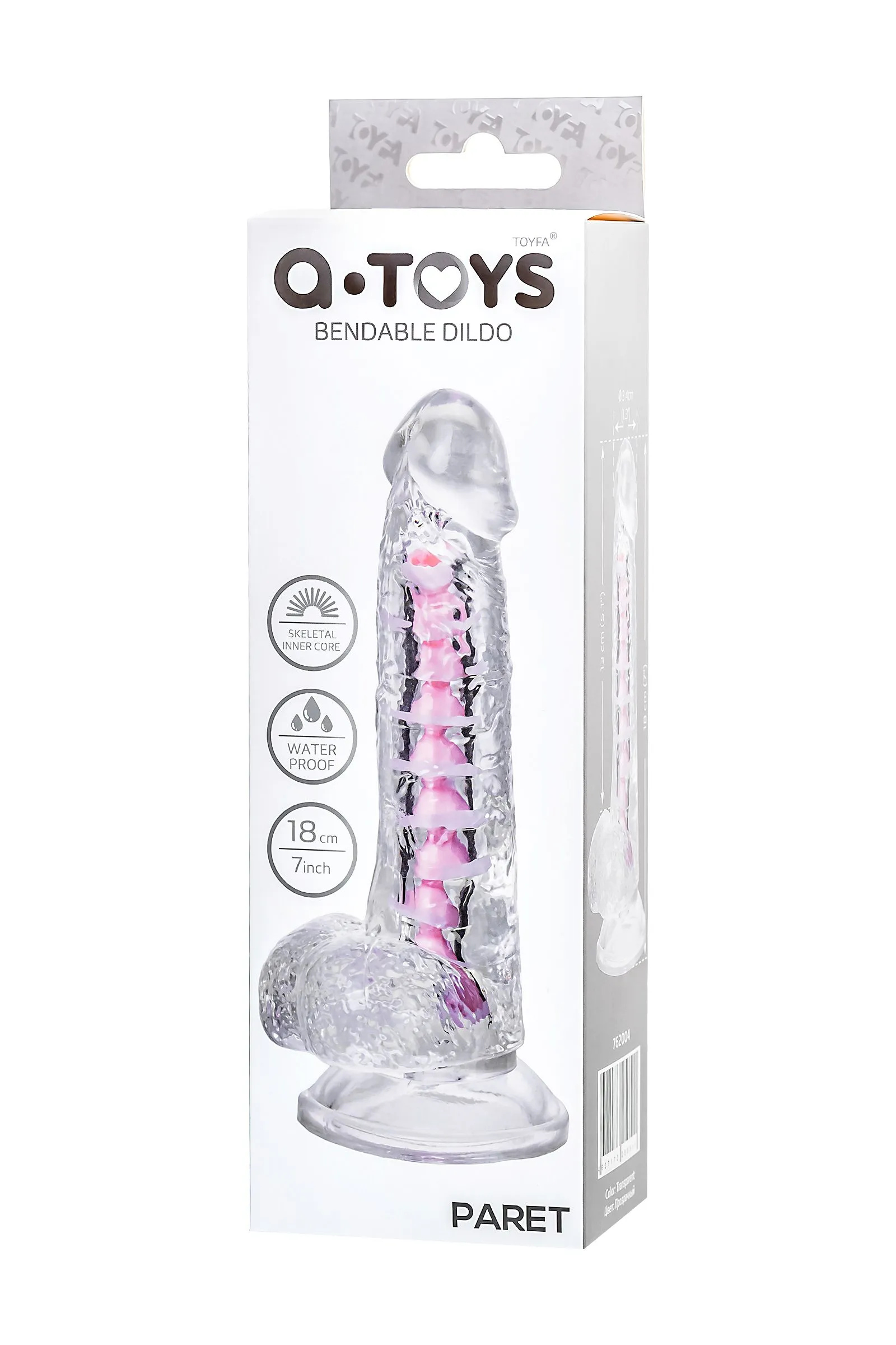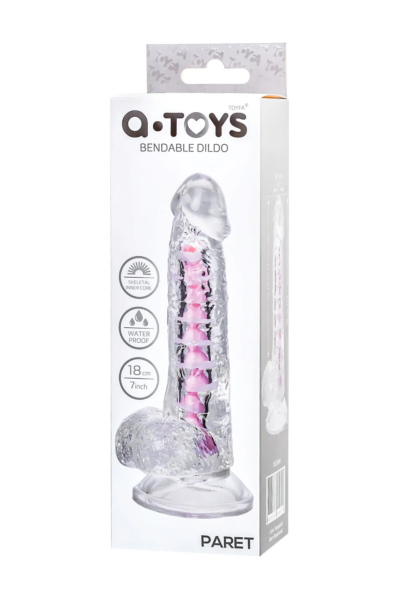 Гибкий фаллоимитатор A-Toys Paret – интересная игрушка, открывающая дополнительные возможности. Хорда внутри девайса позволяет согнуть и зафиксировать его под любым углом. Благодаря его гибкости, он также отлично подходит для стимуляции точки G. Игрушка имеет ярко выраженную головку и покрыта рельефными венами, что усиливает приятные ощущения дополнительным массажем стенок влагалища. Присоска в основании игрушки позволяет закрепить ее на любой плоской поверхности. С A-Toys Paret незабываемое удовольствие вам гарантировано! Общий размер: 18 см Рабочий размер: 13 см Диаметр: 3,4 см
