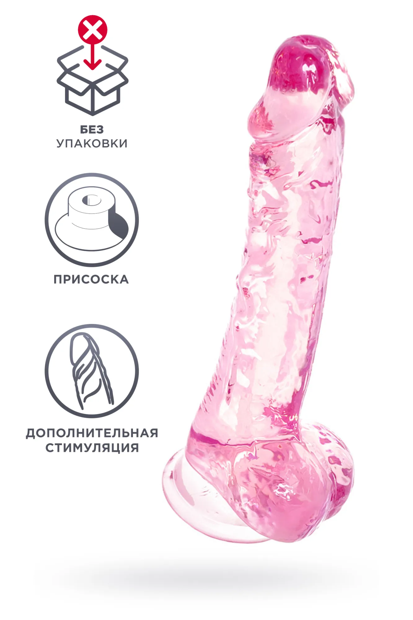 Реалистичный фаллоимитатор сделан из высококачественного материала. Необычный дизайн в виде полупрозрачного пениса нежного розового оттенка создает влажный глянцевый эффект и делает сексуальную игру особенно пикантной. Благодаря наличию мошонки и присоски подходит для вагинального и анального проникновения. Рельефная головка оказывает дополнительную стимуляцию зоны G и эрогенных точек. Размер фаллоимитатора позволяет получать удовольствие и практиковать оральные ласки. Использовать только с лубрикантами на водной основе.