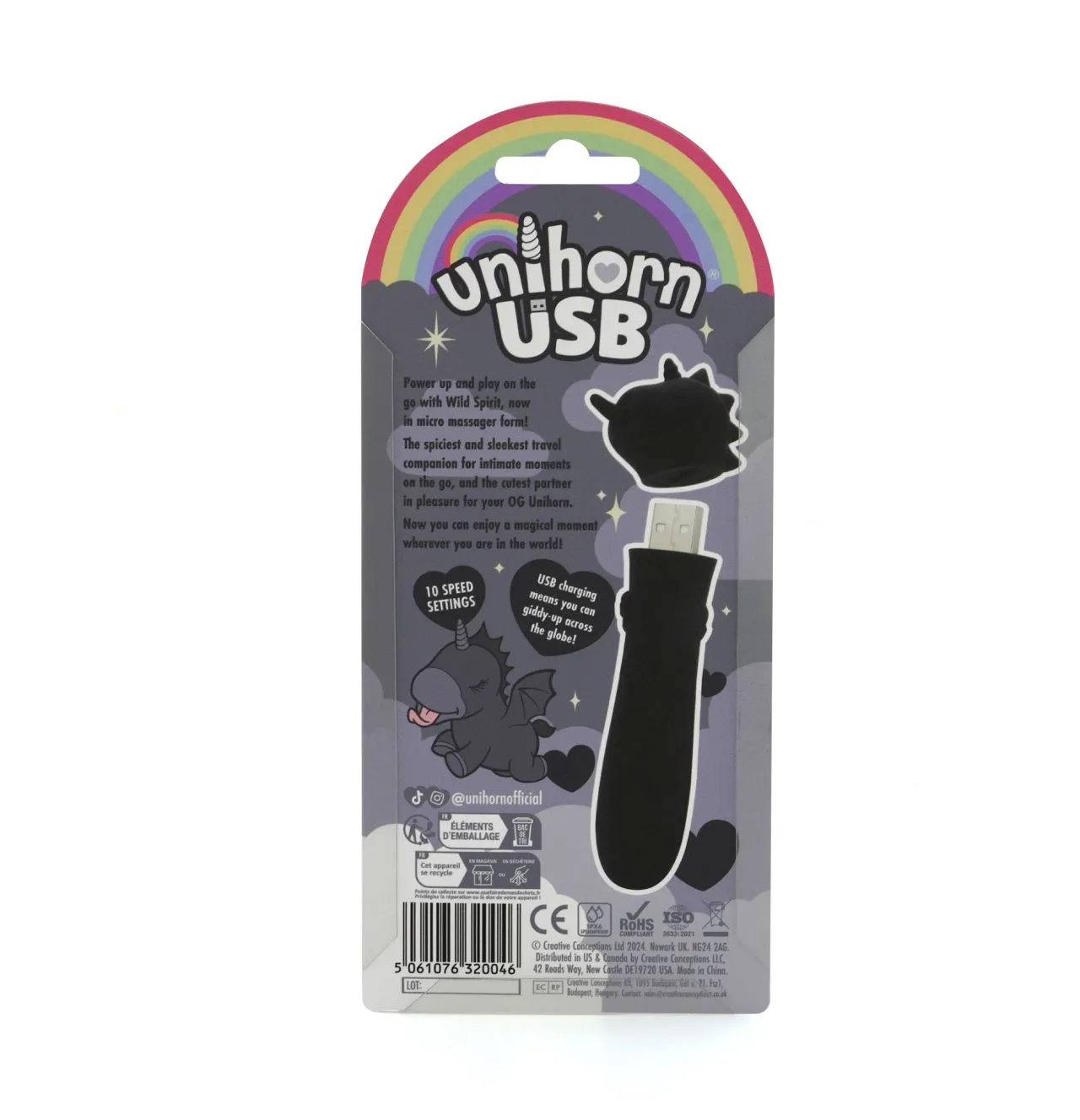 Откройте для себя свою настоящую любовь с помощью Cupid's Beau Unihorn USB, в котором гармонично сочетаются причудливое очарование и мощная производительность! Эта очаровательная вибропуля в виде единорога - ваш сказочный спутник для ненавязчивого удовлетворения в дороге. Его шелковистый, безопасный для тела силикон и 10 очаровательных скоростных режимов доставят вам незабываемые ощущения, куда бы вы ни отправились в своих приключениях.