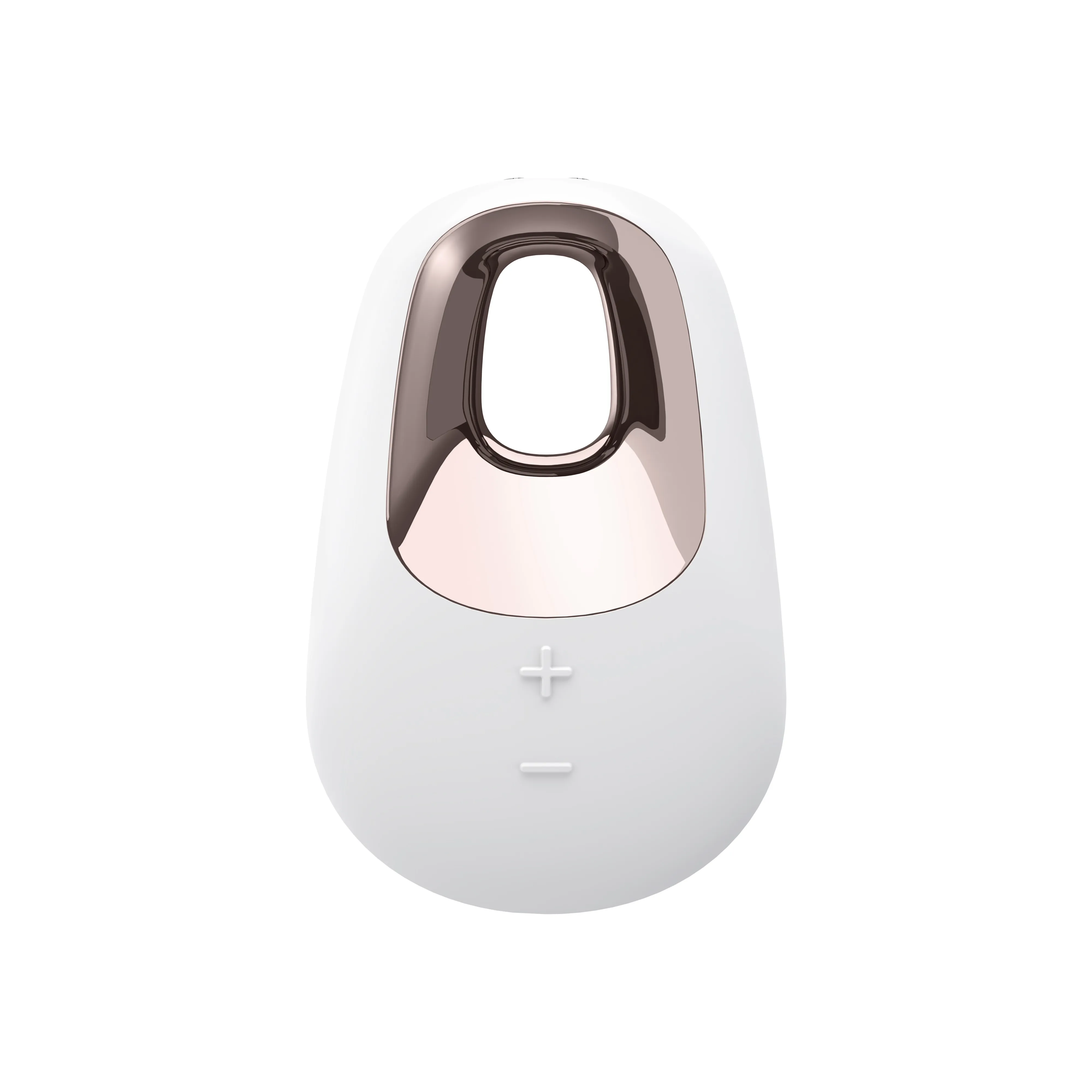 White Temptation — это накладной вибратор, который благодаря своей объемной выпуклой форме идеально прилегает к клитору, даря волнообразное возбуждение и взрывные кульминации. При этом ты можешь регулировать его мощную вибрацию, выбирая одну из 15 программ, которые состоят из 10 ритмов и 5 скоростей. Кнопки «+/-», встроенные в тонкий, приятный для кожи силикон, обеспечивают легкое управление, а благодаря своей эргономичной форме этот клиторальный вибратор удобно держать в руке.