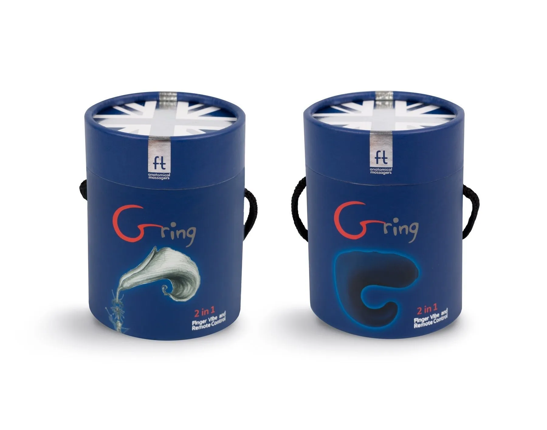 Мини-вибратор Gring представляет собой уникальную игрушку, которая сочетает в себе возможности пальцевого вибратора и пульта дистанционного управления для некоторых игрушек от бренда Gvibe.
