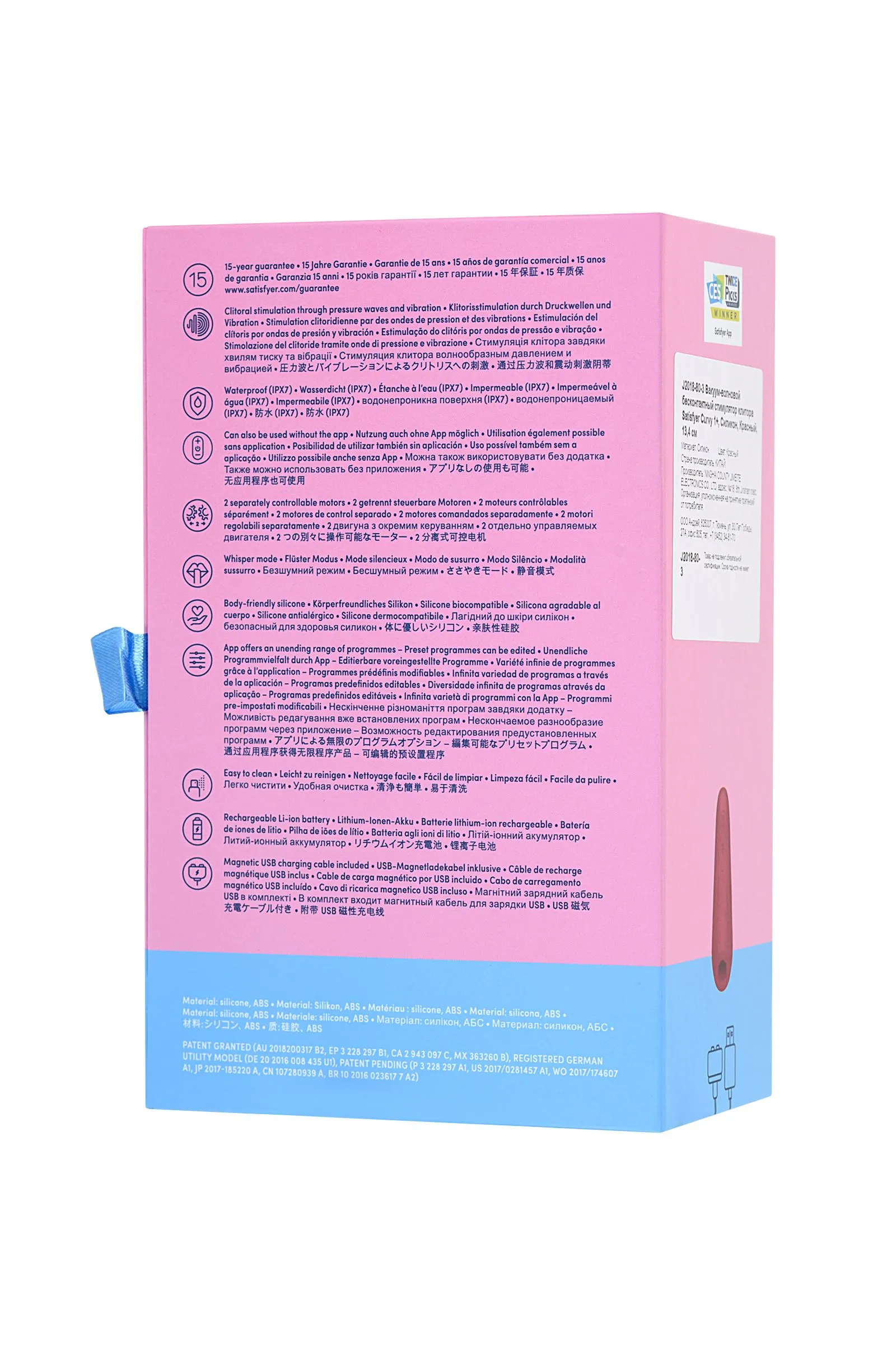 Satisfyer Curvy 1+ сочетает в себе интенсивную бесконтактную стимуляцию клитора под воздействием волны давления с чувственно вибрирующей головкой. Головка с не снимающейся накладкой. Клиторальный стимулятор полностью покрыт силиконом, имеет чуть больший диаметр отверстия, по сравнению с Curvy 2+ и более мягкий силикон в зоне соприкосновения, для более нежной и чувственной стимуляции. Двумя функциями (вакуумной стимуляцией и вибрацией) можно управлять по отдельности. Независимо от того, какой вариант вы выберете, вам гарантированы незабываемые оргазмы, особенно благодаря ультрамягкой головке, которая очень нежно прижимается к вашей бусинке. Curvy 1+ синхронизируется с вашим телефон, через приложение- Satisfyer Connect!!! Satisfyer Connect Satisfyer Connect приглашает вас в захватывающую вселенную, где расстояние не имеет границ, а чувства пробуждаются новыми и захватывающими способами. С помощью постоянно расширяющегося ассортимента сексуальных велнес-устройств, подключенных к Bluetooth ™, вы сможете исследовать чувственный мир непревзойденного удовлетворения. Независимо от вашего пола, поколения или сексуальных предпочтений, являетесь ли вы интровертным одиночным игроком, экстравертным искателем приключений или парой в отношениях на близких или больших расстояниях, наше приложение предоставляет ряд эксклюзивных функций и контента, которые помогут вам получить максимум от ваших чувственных исследований. Добро пожаловать в наш мир! Вот что вы получите - бесплатно !!! Бесчисленные новые способы играть и открывать! С Satisfyer Connect вы можете расширять и персонализировать вибрационные программы в соответствии с вашими уникальными потребностями. Вы можете свободно пользоваться разнообразным и растущим ассортиментом Bluetooth-устройств Satisfyer. Смешивайте и подбирайте программы, используя наши интуитивно понятные сенсорные элементы управления, или загружайте что-то свежее из нашей постоянно расширяющейся онлайн-библиотеки программ стимуляции. Наша функция интеграции устройств позволяет вам дополнительно расширить свой репертуар удовольствия - вы можете использовать до 4 игрушек одновременно, если вы открыты для этого! С помощью прикосновения пальца наша функция тактильного программирования предлагает вам создать в данный момент. Нарисуйте идеальную эротическую программу прямо на сенсорном экране. Или выразить себя, записав свои собственные живые сеансы игры и расслабиться и испытать полное блаженство, когда вы воспроизводите их. Поделись удовольствием с другими людьми! Зачем ограничивать веселье для себя? Раздел удаленного партнера нашего приложения предлагает множество возможностей для связи с другими через ваши устройства с доступом в Интернет. Это все об интерактивных эротических впечатлениях, независимо от того, с кем вы решите связаться - с вашим нынешним партнером или с кем-то новым, решать только вам! Испытайте азарт управления чужими устройствами через сетевое соединение. Или откажитесь от управления собственным устройством и синхронизируйте с вашим партнером, чтобы делиться одними и теми же ощущениями одновременно, независимо от того, в какой точке мира вы находитесь. Satisfyer Connect не имеет границ - в настоящее время мы поддерживаем более 25 языков. Интегрированные функции чата / звонка и видеовызова гарантируют приятное интимное общение, к котор