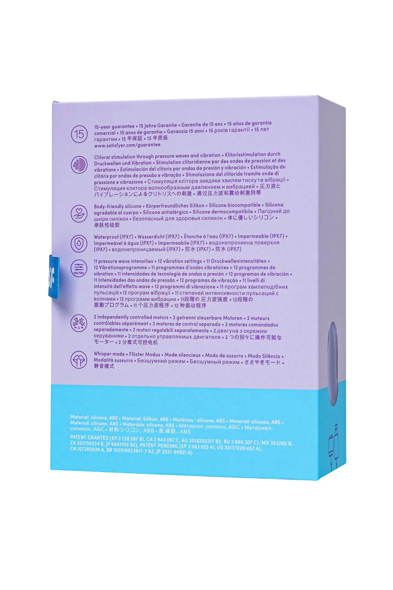 Satisfyer Pro To Go 2 – двойной стимулятор клитора, с которым легко совершать эксперименты в области получения оргазмов. Компактный Pro To Go 2 готов радовать вас наружной стимуляцией клитора с помощью двух автономных моторов. Комбинируйте воздушную пульсацию и проникающие волны вибрации, чтобы достигать неземного блаженства каждый раз. Бесконтактная стимуляция клитора – новейшая запатентованная технология Air Pulse для женских оргазмов. В вашем распоряжении 11 уровней интенсивности вакуум-волновой стимуляции и 12 программ вибрации – от нежной до интенсивной. Интуитивно понятное управление с помощью трех кнопок на корпусе. Satisfyer Pro To Go 2 – особый вид удовольствия, который понравится как искушенным пользователям, так и новичкам. Стимулятор имеет овальную эргономичную форму, которая позволяет ему удобно располагаться в руках. Благодаря нежному силикону, вам будет комфортно держать его в руках и получать удовольствие от вибрации и пульсации. Идеальный размер, чтобы брать любимый стимулятор в дорогу. Стильный и качественный гаджет создан для эстетического и сексуального удовольствия. Потрясающий шелковистый на ощупь высококачественный гипоаллергенный силикон – визитная карточка бренда Satisfyer. Поверхность раструба мягко и деликатно стимулирует клиторальную область, тактильно нежный и приятный на ощупь, силикон быстро адаптируется к температуре вашего тела. Чтобы получить максимум удовольствия и сохранить материал в наилучшем виде, рекомендуется пользоваться качественной смазкой на водной основе. После использования обязательно очищайте игрушку теплой водой со специальными бактерицидными спреями для интимных товаров. Водонепроницаемый корпус побуждает воспользоваться стимулятором в душе и ванной, чтобы по-новому ощутить импульсы своего тела. Особенности: Возможность одновременного воздействия на клитор воздушной пульсацией и вибрацией Управление кнопками на корпусе. 12 режимов вибрации и 11 режимов волновой стимуляции. Нежный лавандовый цвет и мягкий, эластичный силикон без запаха, без аллергенов и вредных для здоровья веществ. Идеальный вариант для первой игрушки, подарка и путешествий. 100% водонепроницаемый - IPX7.