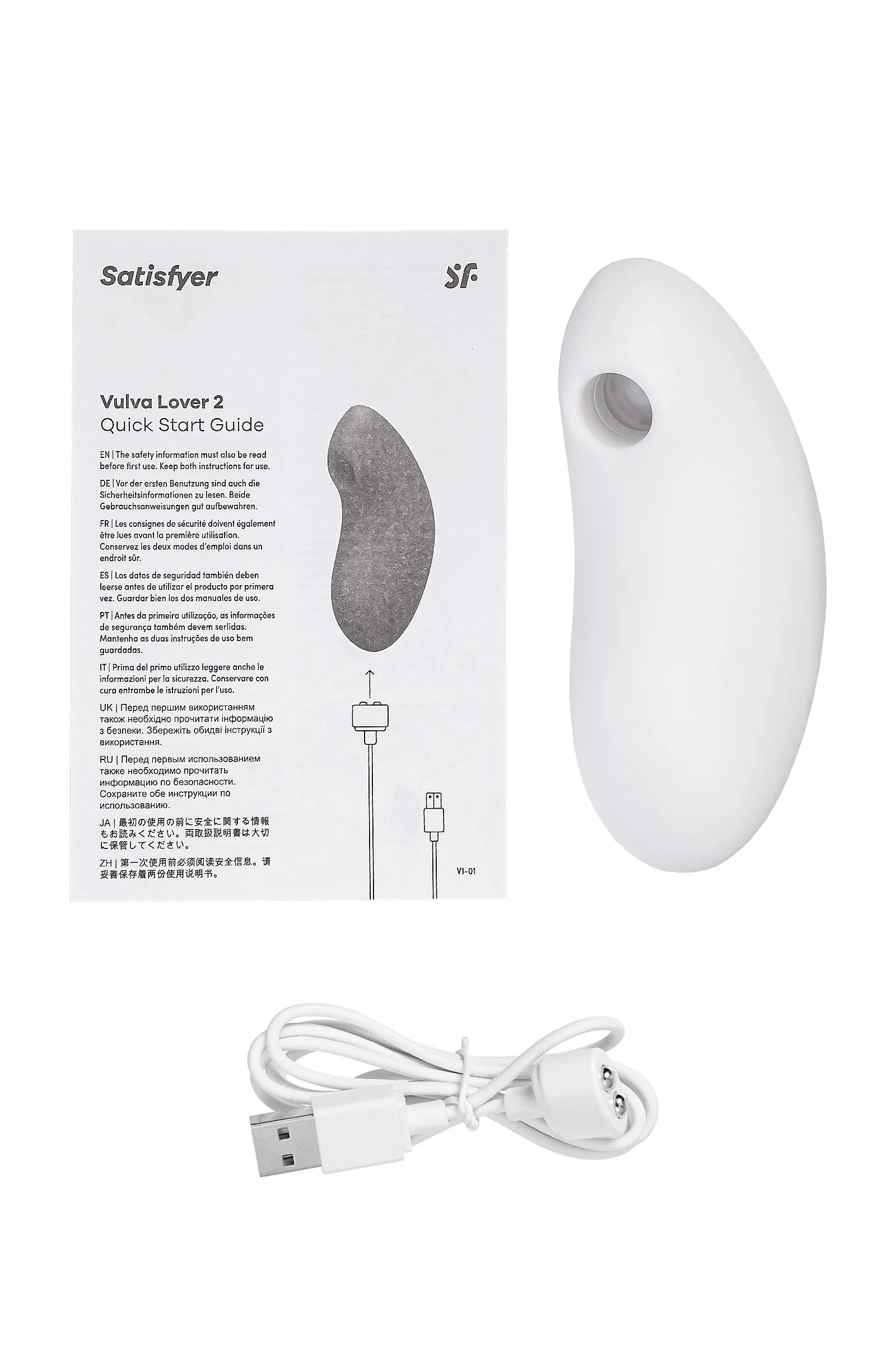 Откройте интимные границы для непревзойденного блаженства с Vulva Lover 2 от Satisfyer. Этот белоснежный стимулятор клитора погрузит вас в мир удовольствия, принося радость и наслаждение в каждом моменте. Независимо от вашего уровня опыта, Vulva Lover 2 станет вашим надежным спутником, предлагая две захватывающие функции в одном устройстве. Комбинируйте воздушную пульсацию Air Pulse и проникающие волны вибрации, чтобы достигать неземного блаженства каждый раз Бесконтактная стимуляция клитора – новейшая запатентованная технология Air Pulse для женских оргазмов. В вашем распоряжении 11 уровней интенсивности вакуум-волновой стимуляции и 12 программ вибрации – от нежной до интенсивной. Интуитивно понятное управление с помощью трех кнопок на корпусе. Позвольте себе полностью раскрыться и укреплять интимное здоровье вместе с Vulva Lover 2. Удобная форма с легким изгибом обеспечивает полное окутывание блаженством. Элегантный Satisfyer Viva La Vulva 2 особенно интенсивно обнимает клитор благодаря закругленной контактной поверхности из приятного для тела силикона. Для удобства использования вибрации на практичной рукоятке остаются низкими. Помимо своей компактности, этот вибратор изготовлен из безопасного для тела силикона, обеспечивая мягкость и комфорт. Он водонепроницаемый по стандарту IPX7, что позволяет вам наслаждаться им в ванне или под душем. Пусть ваша фантазия воплотится в реальность, ведь Vulva Lover 2 готов удовлетворить ваши желания, где бы вы ни находились. Продукт Satisfyer олицетворяет стиль, качество и инновации. Этот вибратор не исключение. Он перезаряжаемый и готов служить вам долго, доставляя радость на протяжении всей его 45-минутной работы. Предоставьте себе возможность испытать непревзойденное блаженство и удовлетворение с Vulva Lover 2 от Satisfyer - вашим верным партнером на пути к сексуальному благополучию. Особенности: Возможность одновременного воздействия на клитор воздушной пульсацией и вибрацией Управление кнопками на корпусе. 12 режимов вибрации и 11 режимов волновой стимуляции. Белоснежный цвет и мягкий, эластичный силикон без запаха, без аллергенов и вредных для здоровья веществ. Низкий уровень вибрации в ручке. Стимулирует клитор на большей площади 100% водонепроницаемый - IPX7. Время работы 45 минут. Перезаряжаемый, USB-кабель, время зарядки 4 часа.