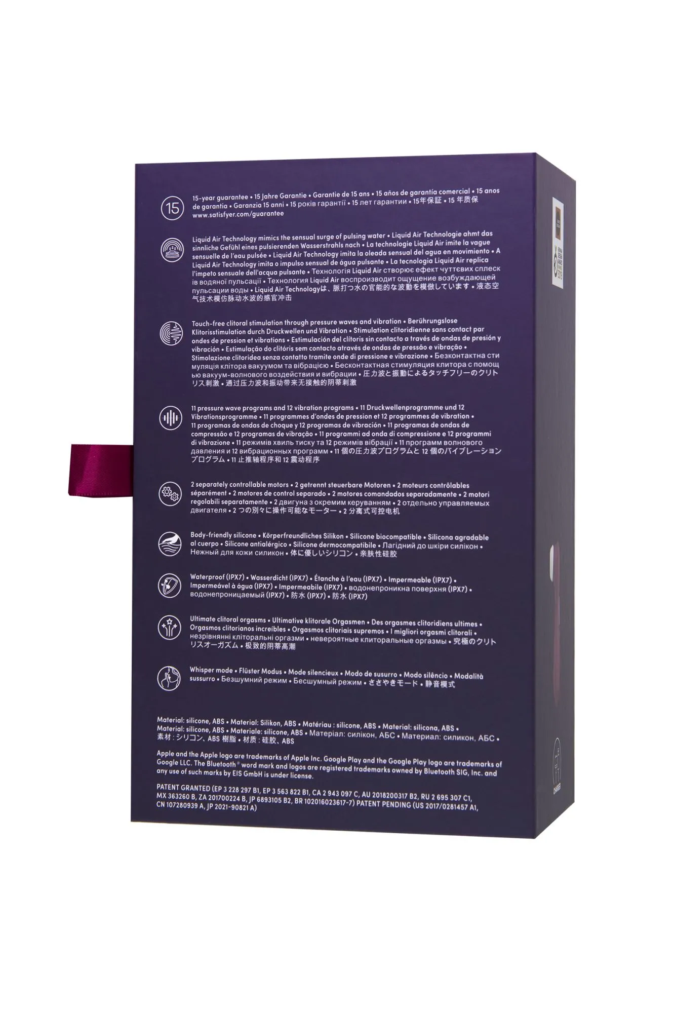 • технология Liquid Air — прилив пульсирующей и вибрирующей волны, который воссоздает эффект оральных ласк с поразительной точностью;